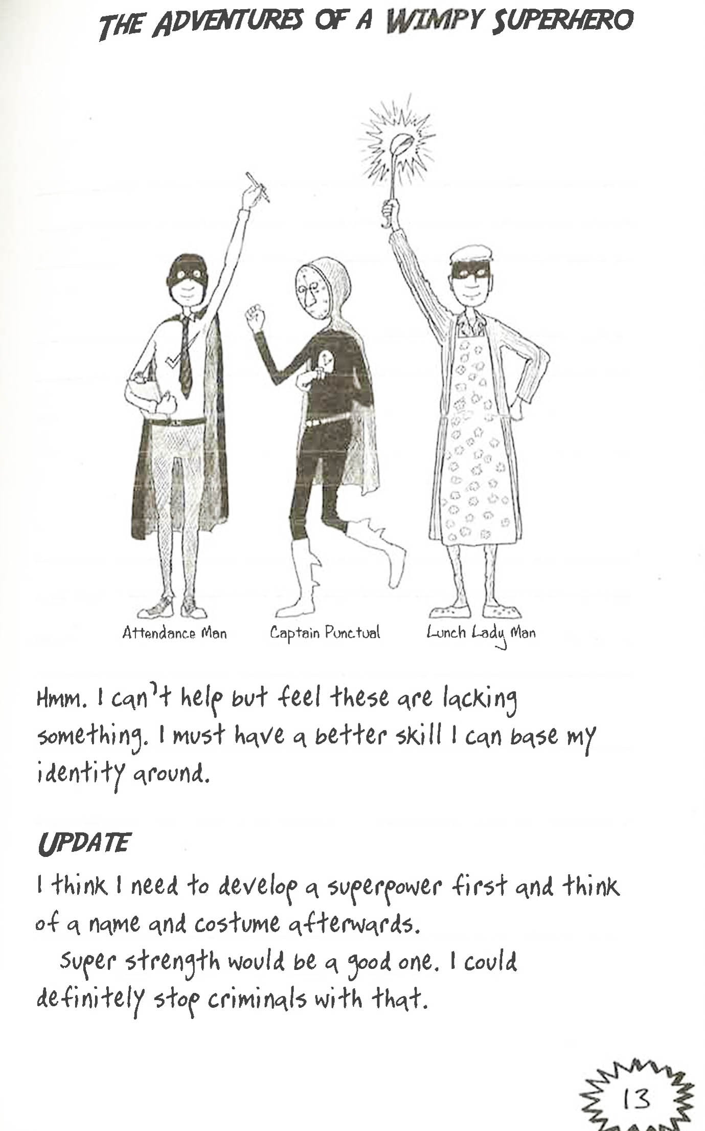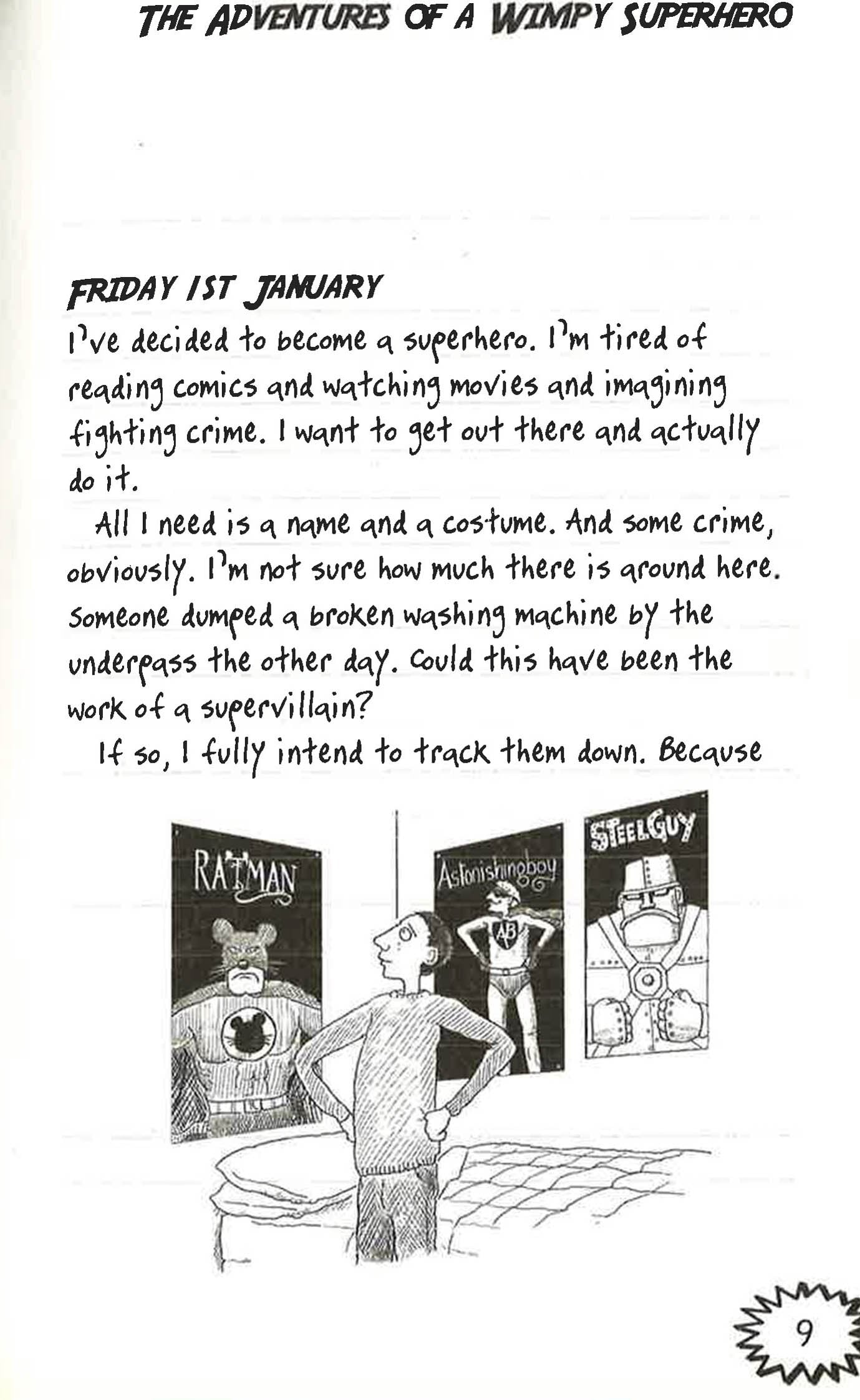 Josh Walker is an ordinary teenage nerd. But when he puts his costume on, he is transformed into an ordinary teenage nerd with a costume on. After years of watching superhero movies, reading comics and fantasizing about being a crime-fighter, he decides to become one. First of all he needs a superhero name, a superhero costume and some superpowers. Then he needs to find some crime to fight. His diary chronicles his valiant attempts to make the world a better place and, armed with only plastic handcuffs and stink bombs, and stuck with his dependable but incompetent sidekick, Henry, Josh becomes embroiled in a dark world of crime, armed gangs and people illegally parking in disabled spaces. Accompanied by hilarious illustrations throughout, The Adventures of a Wimpy Superhero tells the story of the everyday dilemmas of superheroes in the real world through the hilarious diary of a fifteen-year-old boy. It asks the big questions, such as: Why would someone want to fight crime? Wouldn't they get in the way of police (and school) work? Why would a tight-fitting Lycra costume help? Will Josh rise to the challenge and become a genuine hero? Or will he go home and hide under his bed?