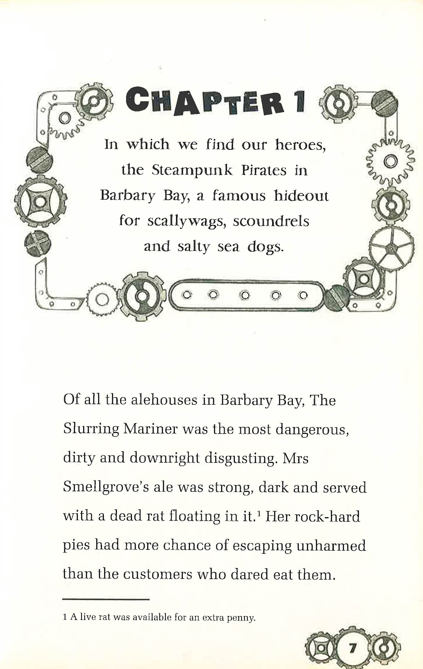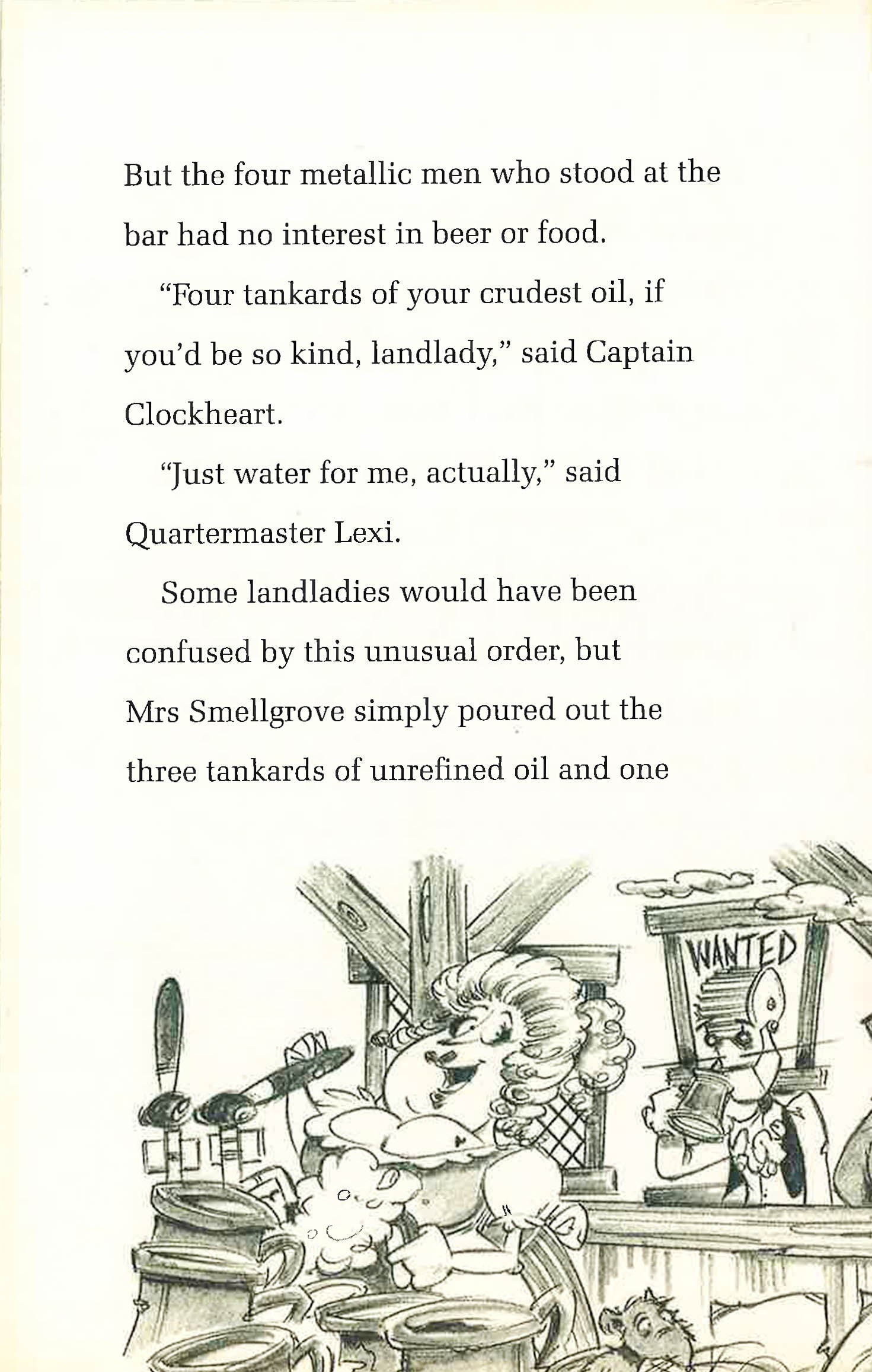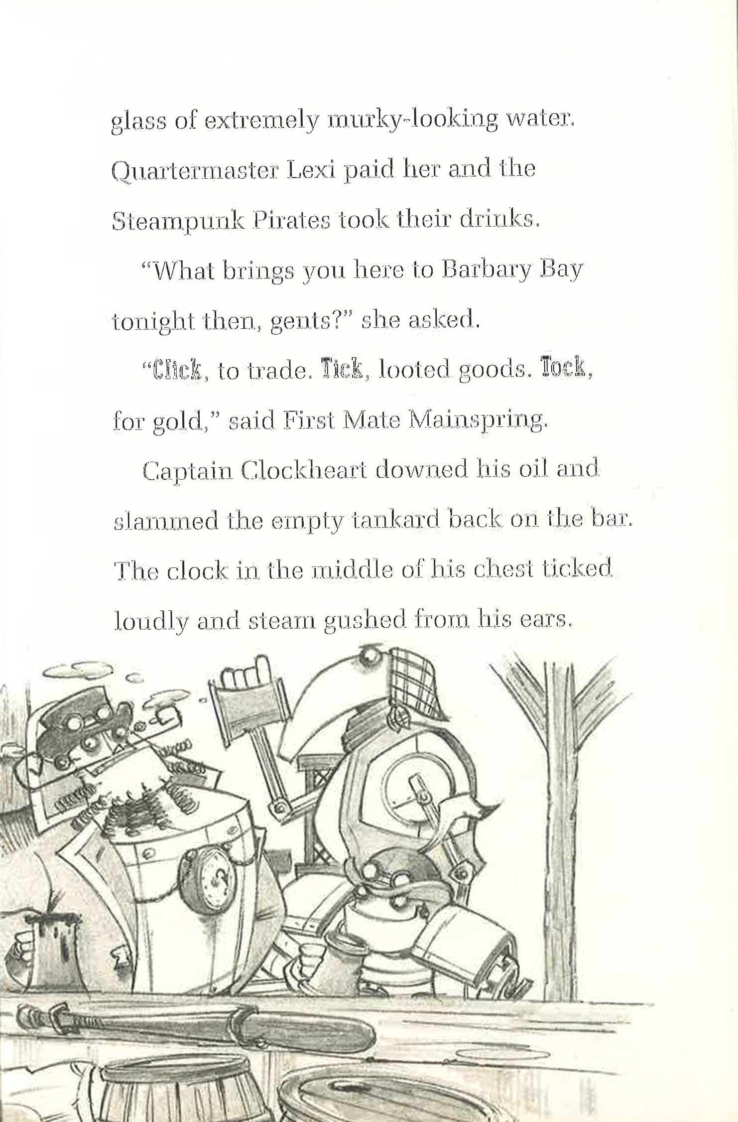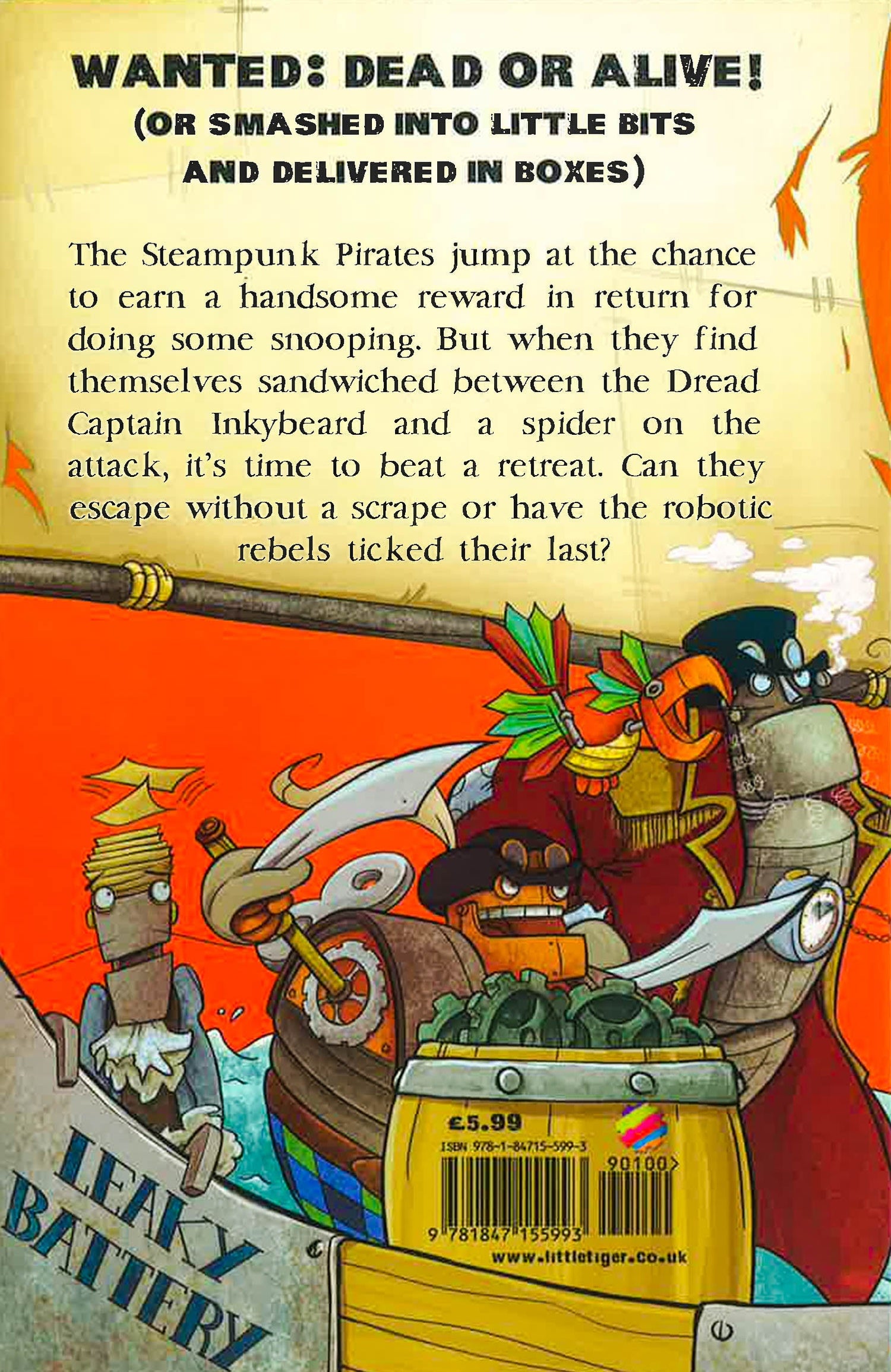 Wanted: Dead or Alive! (Or smashed into little bits and delivered in boxes.)The Steampunk Pirates jump at the chance to earn a handsome reward in return for doing some snooping. But when they find themselves sandwiched between the Dread Captain Inky beard and a spider on the attack, it's time to beat a retreat. Can they escape without a scrape or have the robotic rebels ticked their last?This hilarious new series from Gareth P. Jones, author of Ninja Meerkats, is sure to delight young readers with its madcap humour and larger-than-life robot pirate crew.