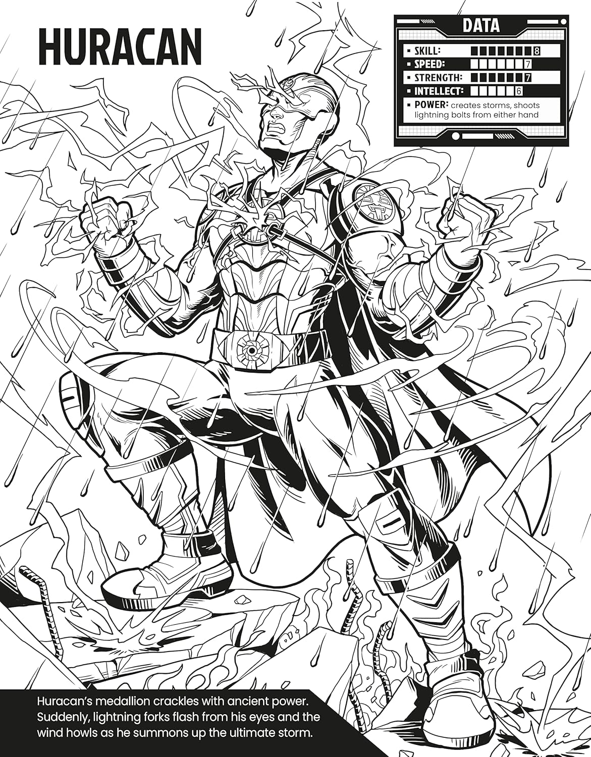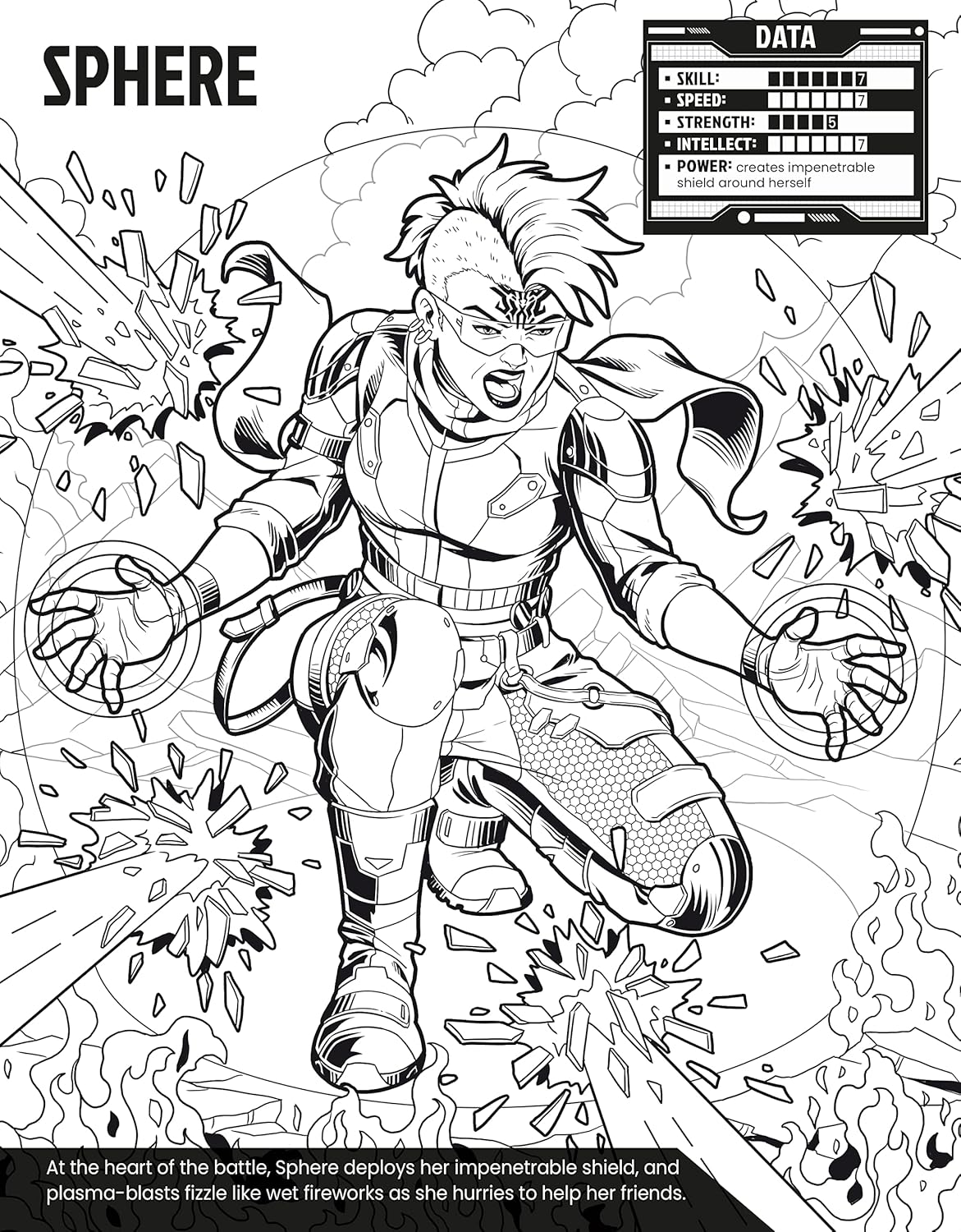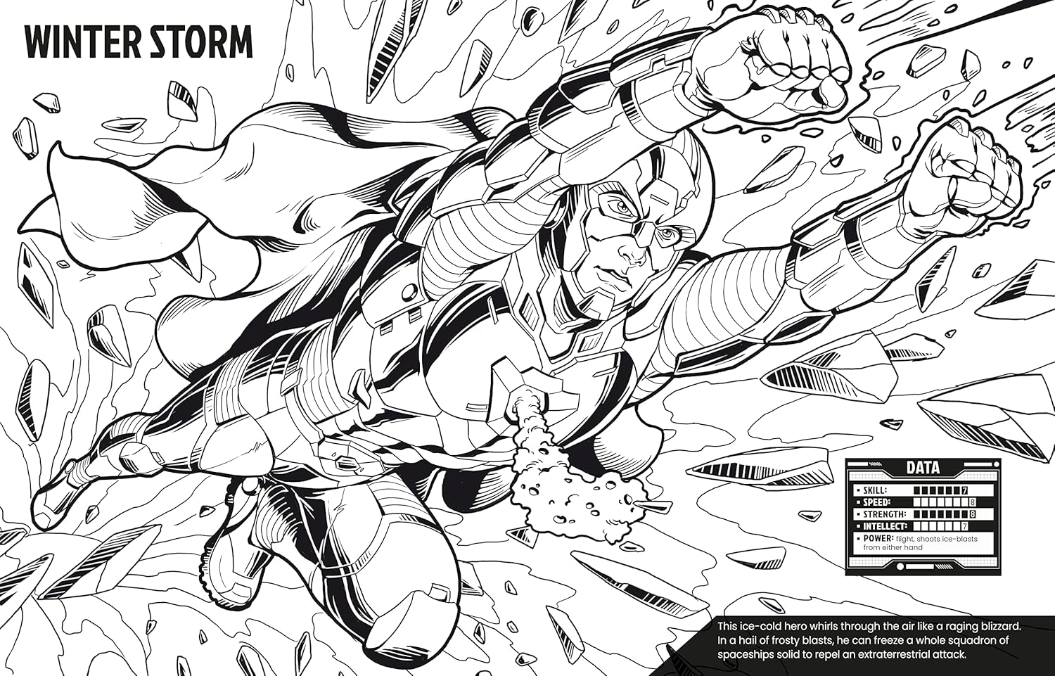 Discover 22 of the bravest, most powerful superheroes in the galaxy with this awesome colouring book. From human flamethrowers and weather manipulators, to shadowy shapeshifters and deadly ninjas, use your pens to colour capes, wings, masks and more as you bring each hero to life. Includes stats boxes for each hero's powers, strength and skill.