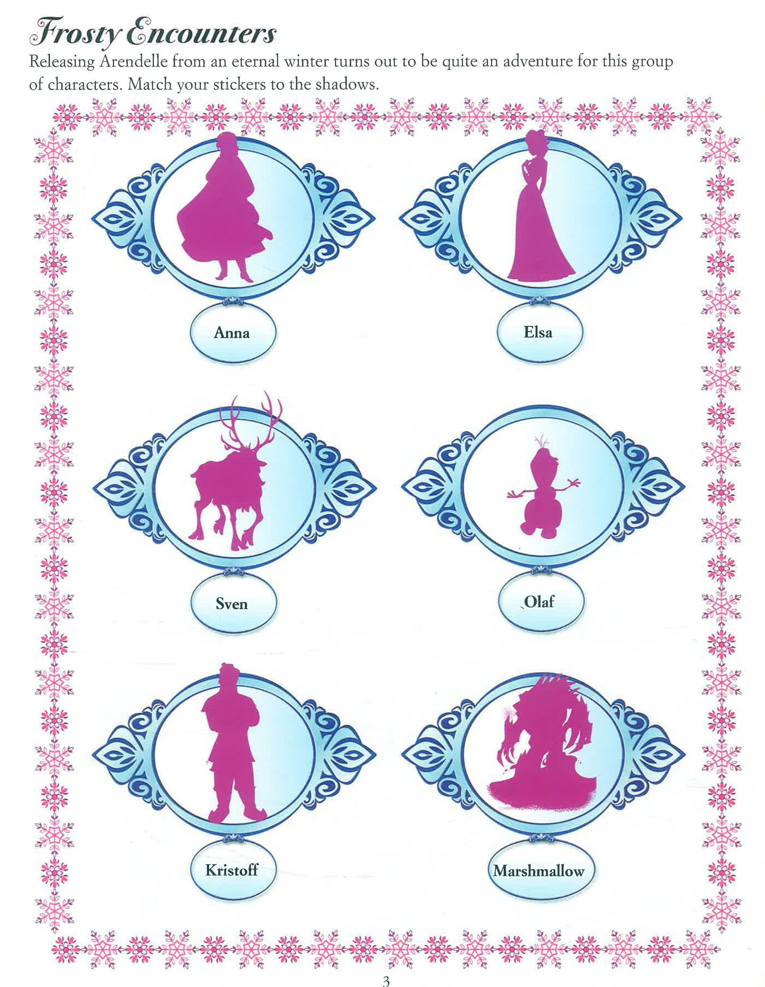 This 6-in-1 sticker book is designed for children 3 years of age and up. It offers simple and fun activities complete with Anna, Elsa, and all the Frozen characters.