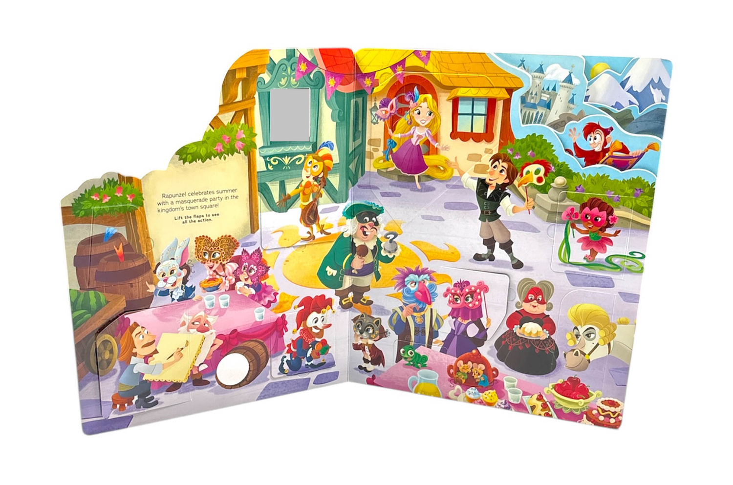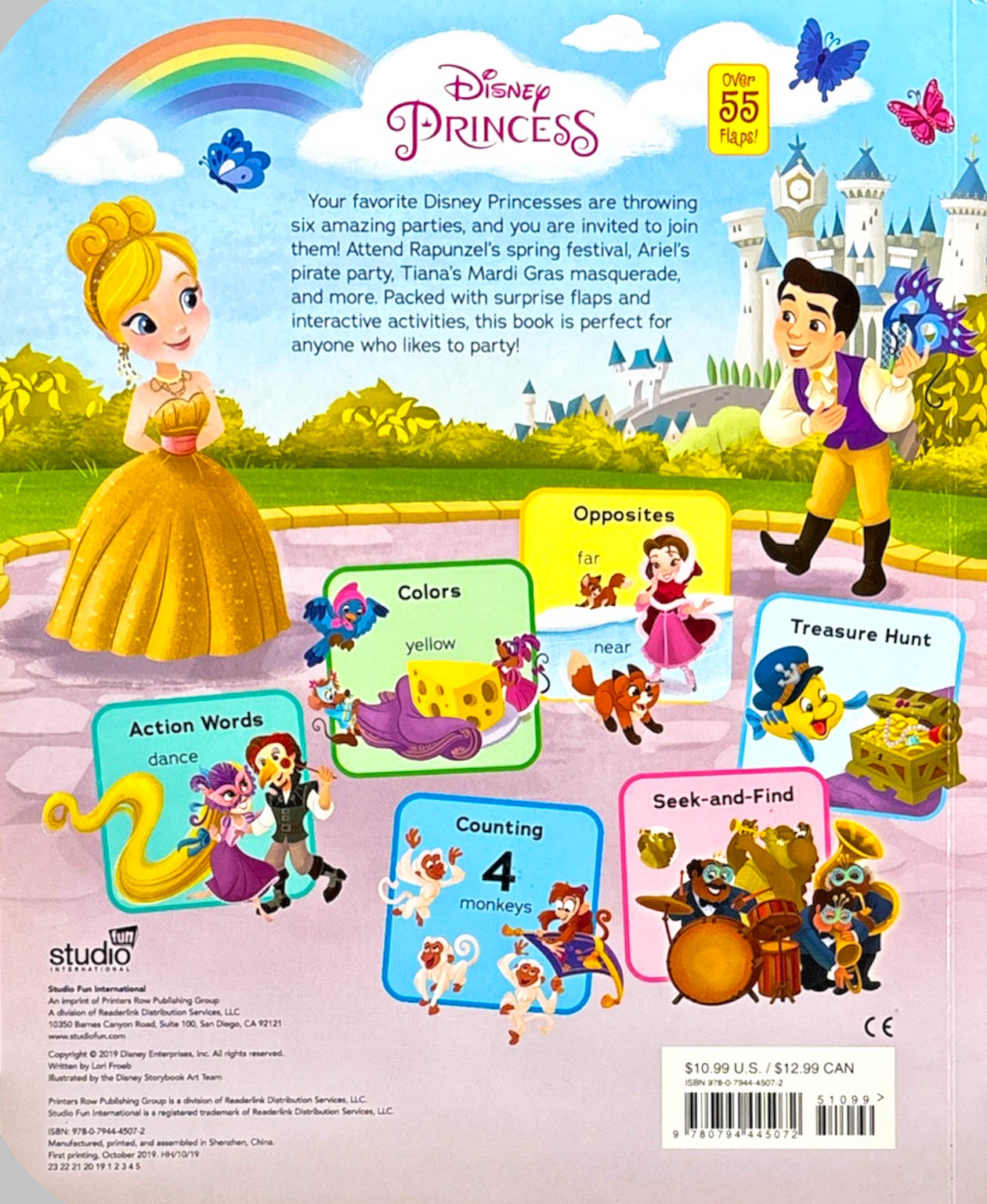 Your favorite Disney Princesses are throwing six amazing parties, and you are invited to join them! Attend Rapunzel’s spring festival, Ariel’s pirate party, Tiana’s Mardi Gras masquerade, and more. Packed with more than 55 flaps that reveal interactive activities to teach counting, colors, and more, this book is perfect for anyone who likes to party!