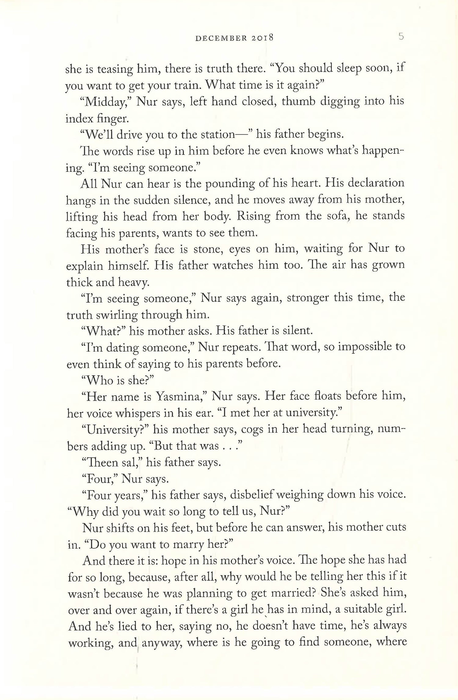 Once, Nur was a restless college student, struggling to fit in. At a party, he meets Yasmina, a beautiful and self-possessed aspiring journalist. They start a conversation―first awkward, then absorbing. And as their relationship develops, so too does Nur’s self-destruction. He falls deeper into traps of his own making, attempting to please both Yasmina and his family until he must finally reveal the truth: Yasmina is Black, and he loves her.