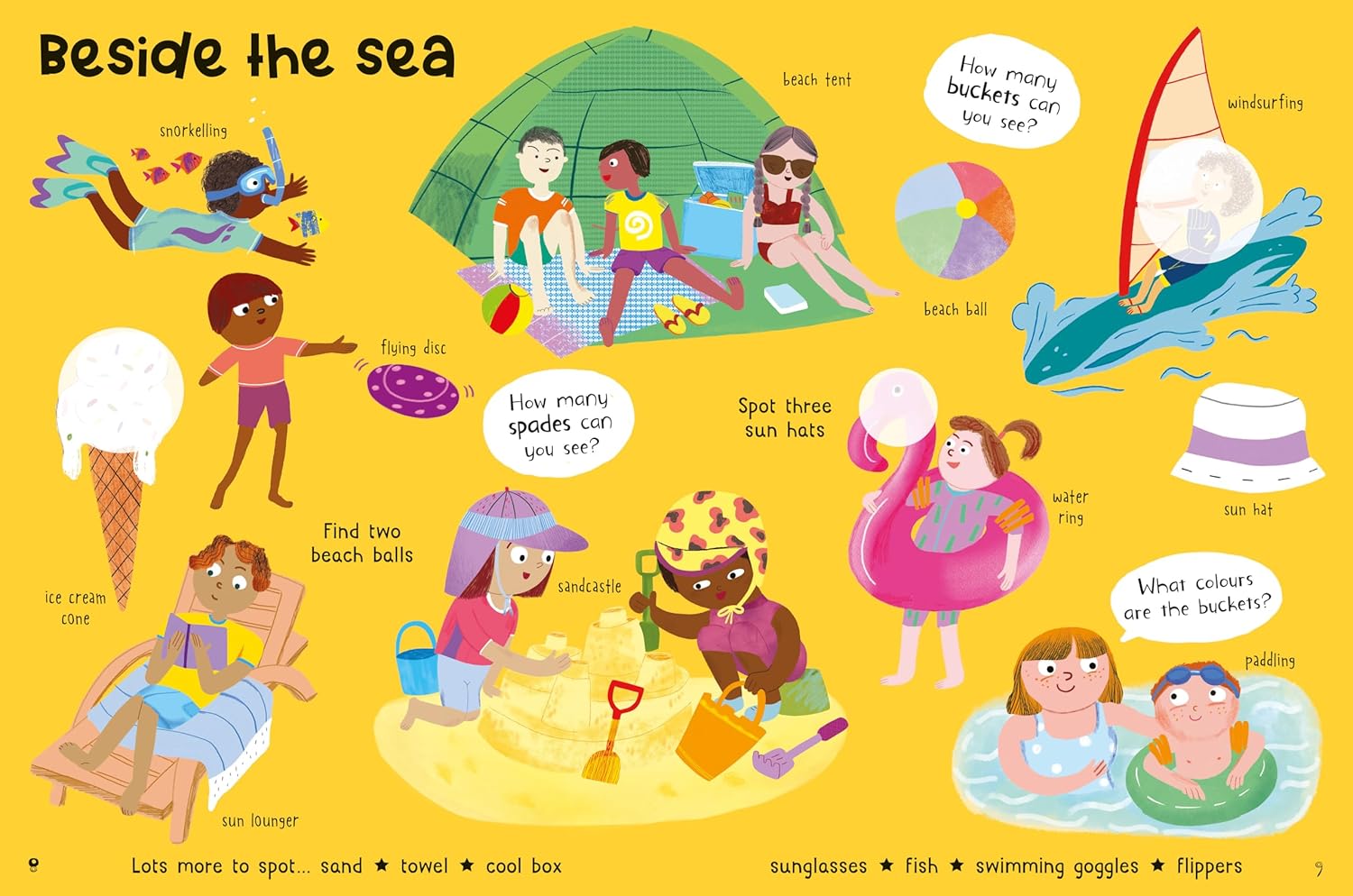 - 🔍 Spotting tasks on each spread focus on key learning areas such as numbers, colours, and opposites, plus lots of extra quick spots throughout