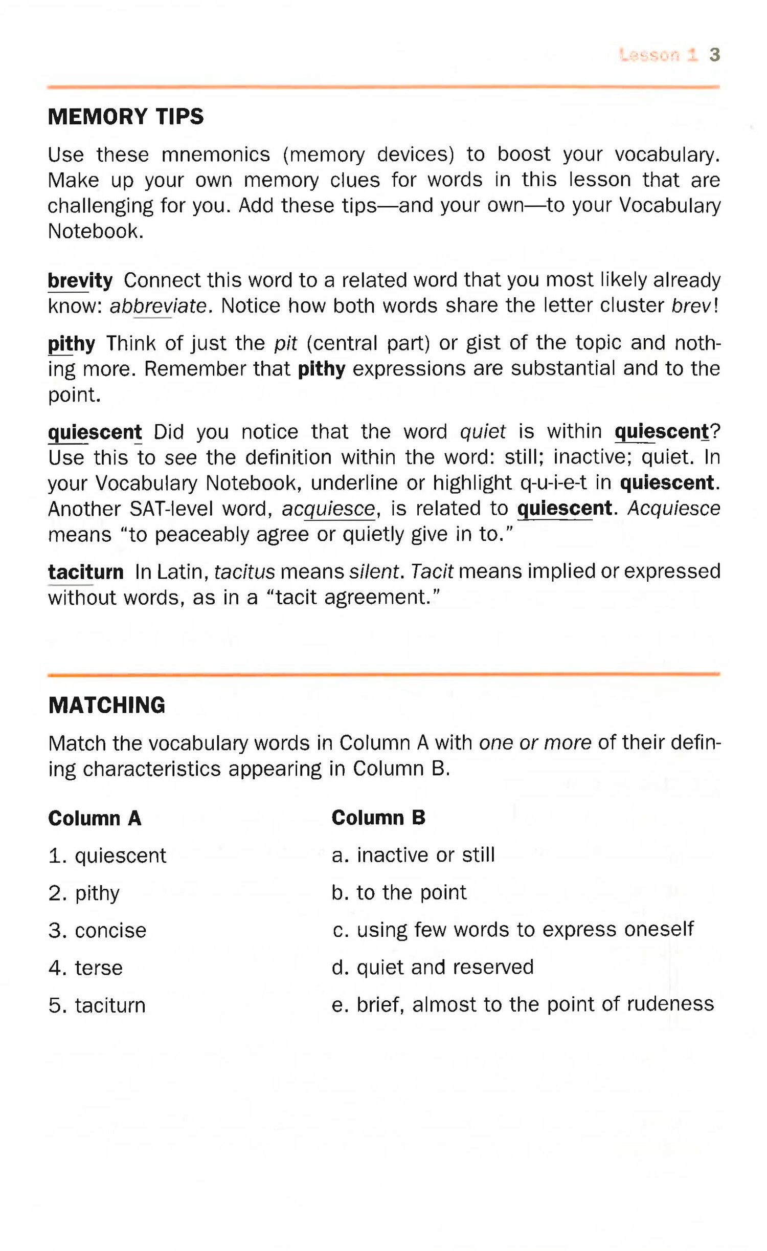 Each of the 37 lessons focuses on a thematic word cluster--words having similar meanings or words that apply to similar circumstances. Also included are phonetic pronunciation keys for each word, memory tips, review exercises following every five lessons, and an alphabetical word index.