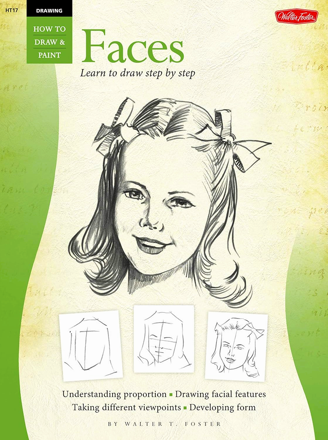 Walter Foster How to Draw & Paint Drawing Faces Book- Few artistic subjects are as challenging as the human face and few are as satisfying to approach successfully! In this book, you'll learn the basics of drawing facial features and beyond! Inside, you'll find the correct head and facial proportions for both adults and children; then you'll discover how to render a variety of faces step by step, with tips on how to adapt your drawings for varied poses and facial expressions. Easy-to-follow demonstrations and helpful techniques for drawing eyes, noses, lips, and ears make this book a necessary addition to every artist's library of drawing references! 32 pages, soft cover.