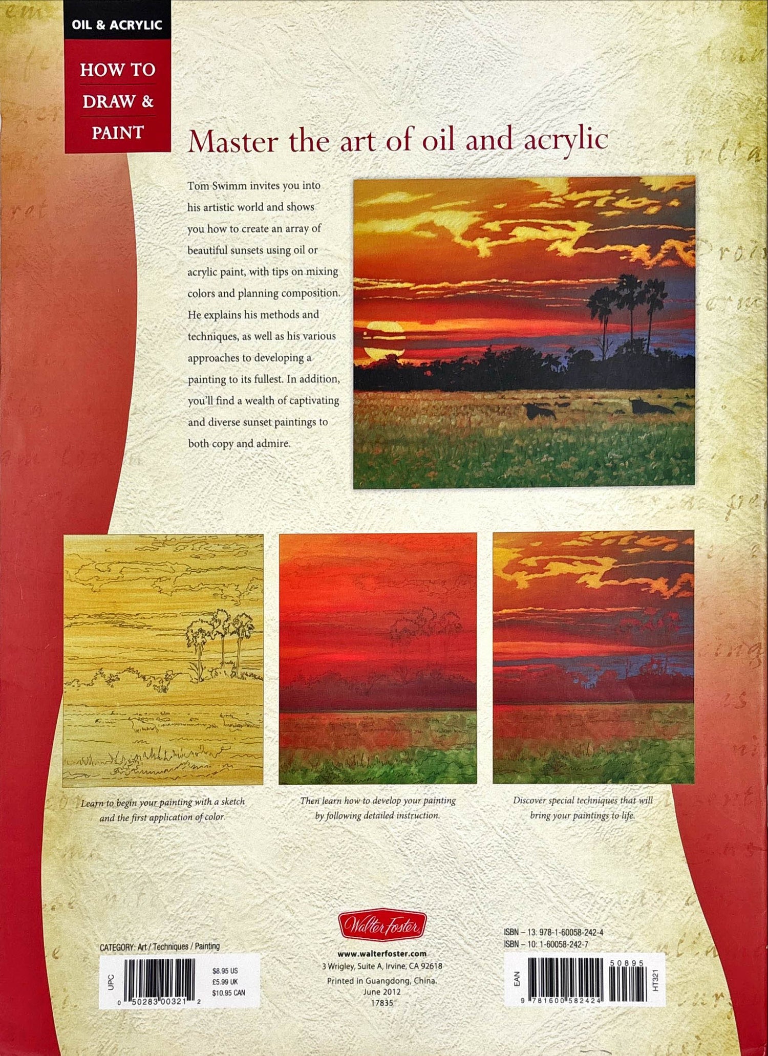 Artists, photographers, and lovers alike are drawn to the warm, romantic tones of the Golden Hour. In this book, talented artist Tom Swimm shows aspiring artists how to effectively capture the drama of sunsets in oil or acrylic. Readers can find tips on choosing a color palette, taking photo references, and creating a convincing interplay of light and shadow. Tom also guides aspiring artists step by step through a number of beautiful sunset paintings, from coastal scenes to charming landscapes.