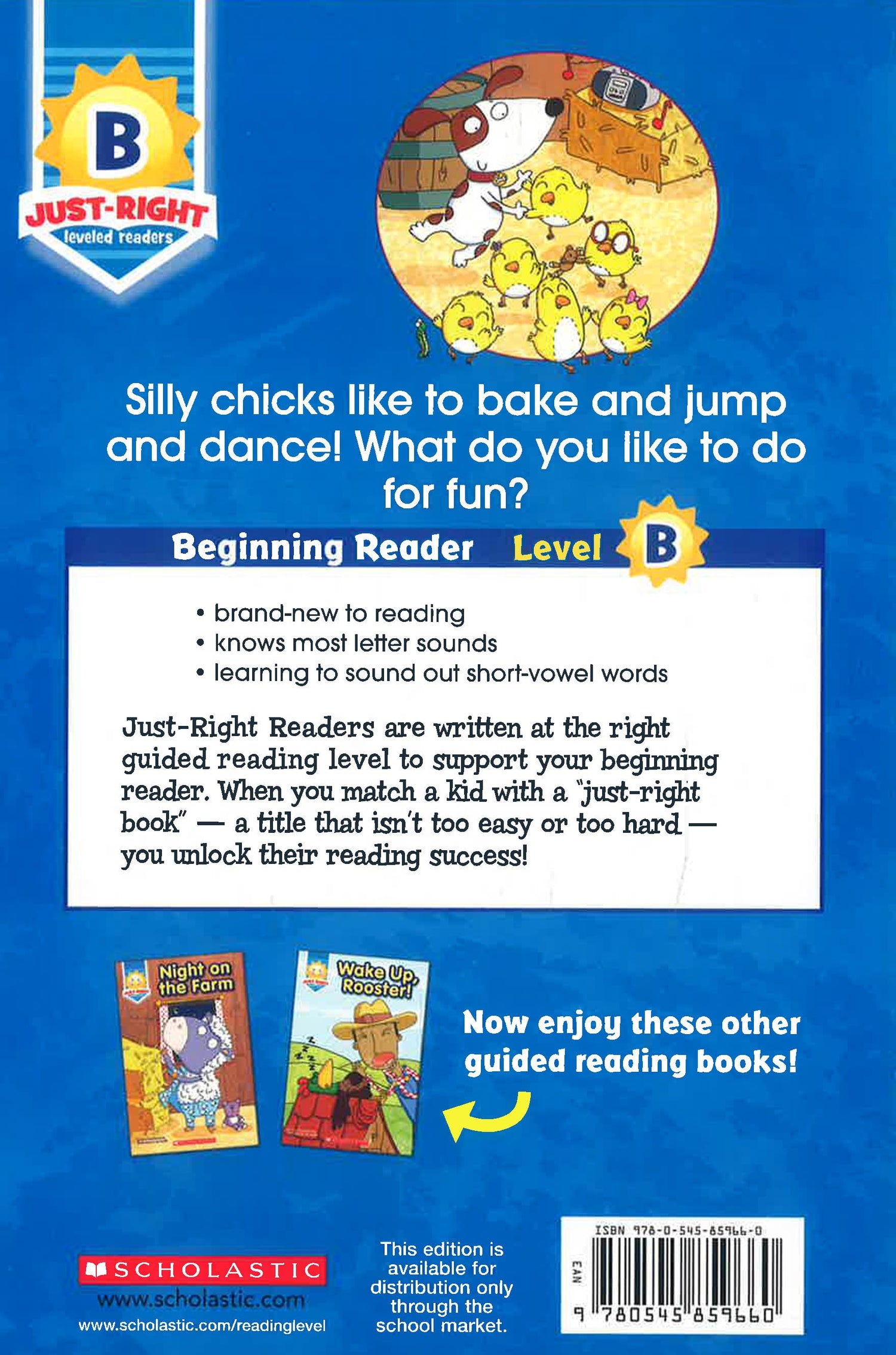 What are those six silly chicks up to?Jumpstart reading success with this series of motivating storybooks correlated with Guided Reading Levels A-I. These full-color storybooks feature just the right amount of text to help children learn to read with ease and confidence. Includes a tip-filled parent guide.
