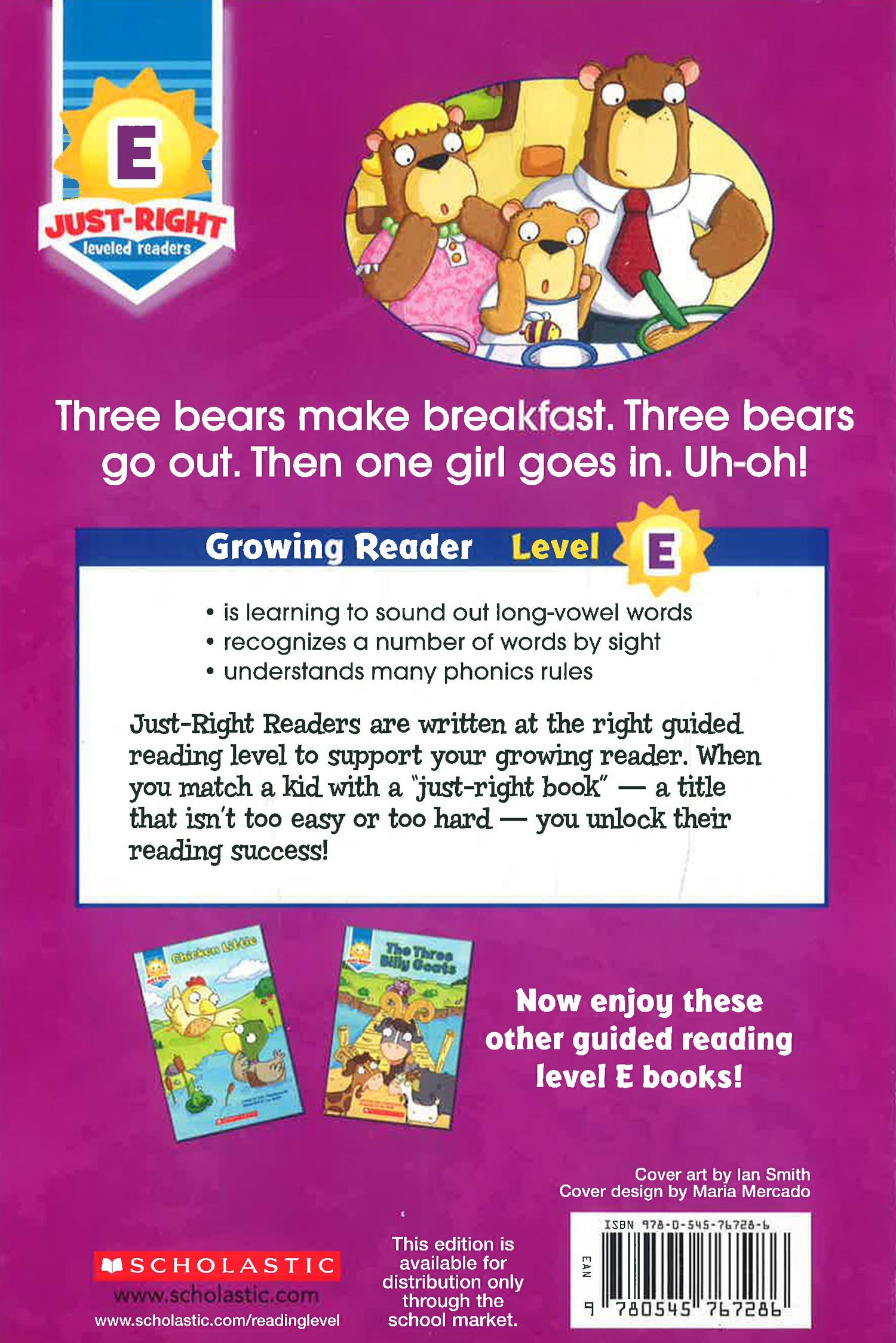 Jumpstart reading success with this series of motivating storybooks correlated with Guided Reading Levels A–I. These full-color storybooks feature just the right amount of text to help children learn to read with ease and confidence. Includes a tip-filled parent guide. Here is told the classic story of the three bears.
