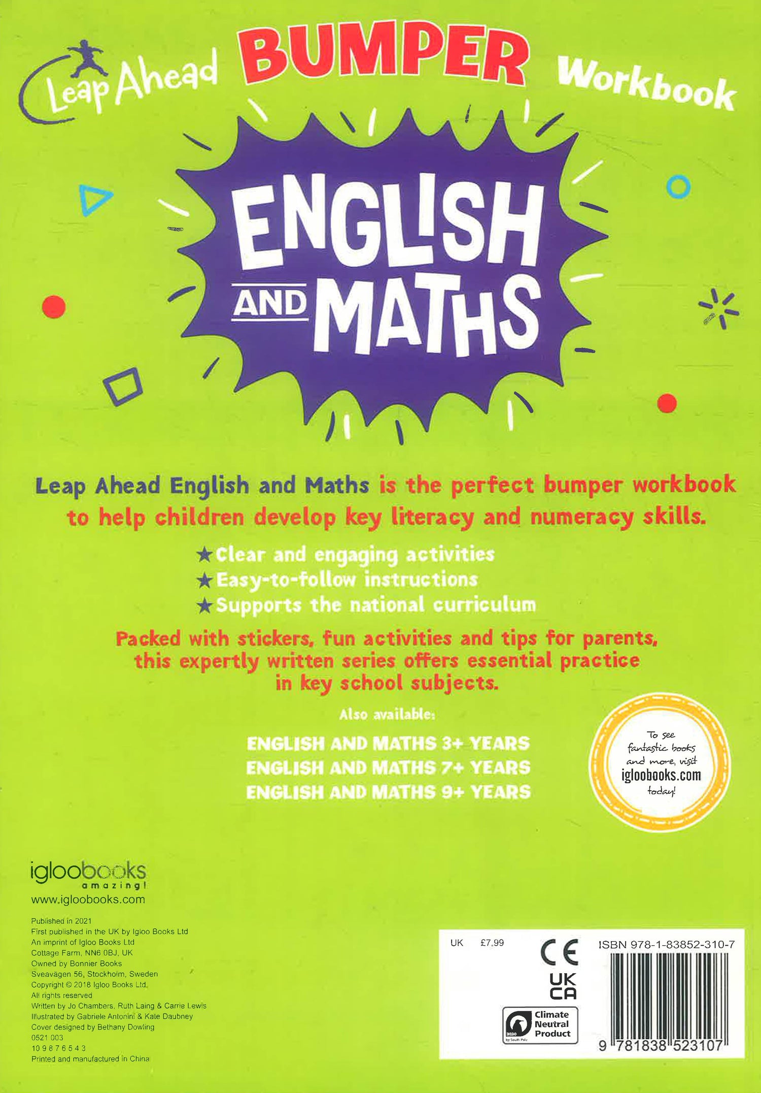 Leap Ahead English & Maths is the perfect bumper workbook to help children develop key literacy and numeracy skills. Clear and engaging activities Easy-to-follow instructions Supports the national curriculum Packed with stickers, fun activities and tips for parents, this expertly written series offers essential practice in key school subjects.