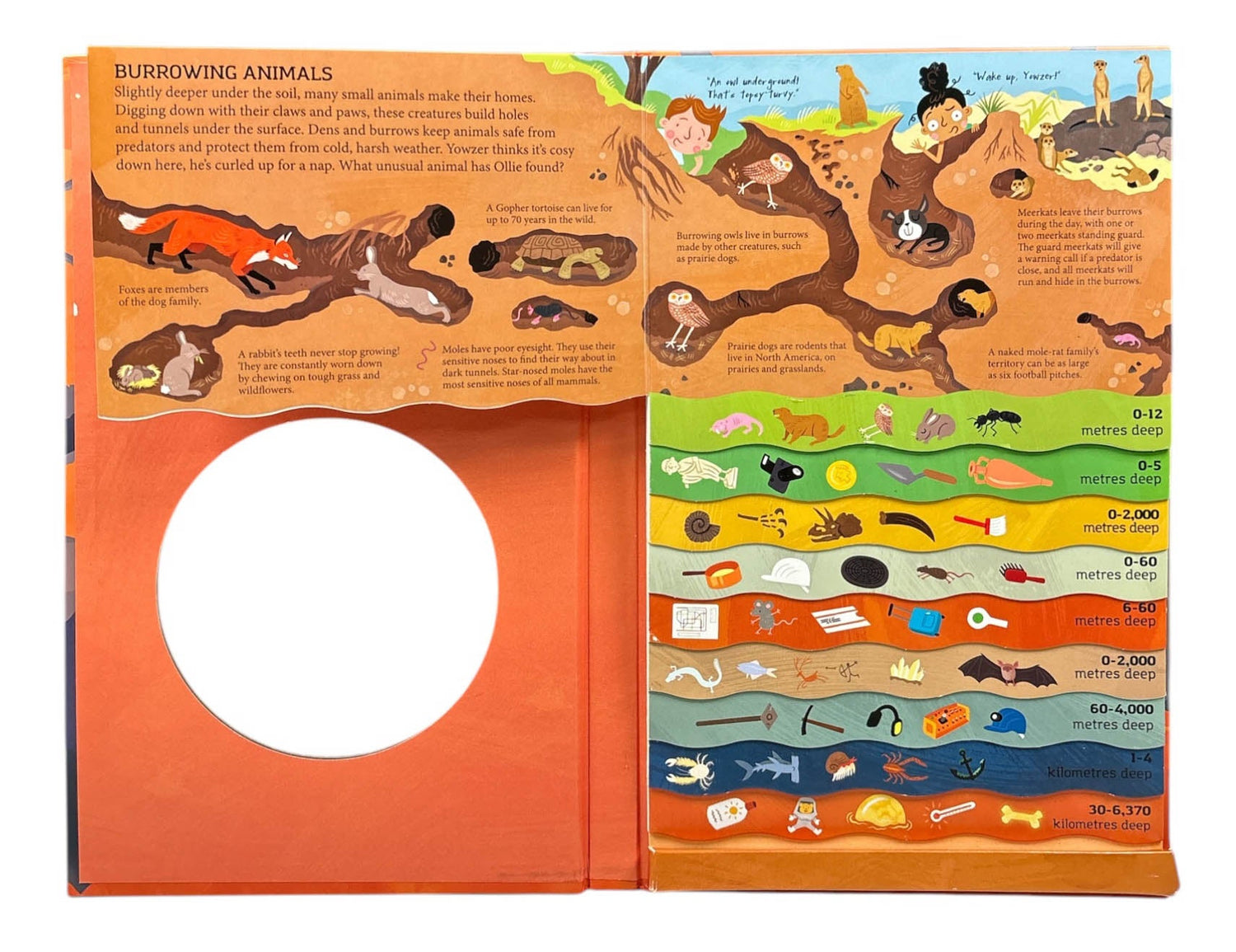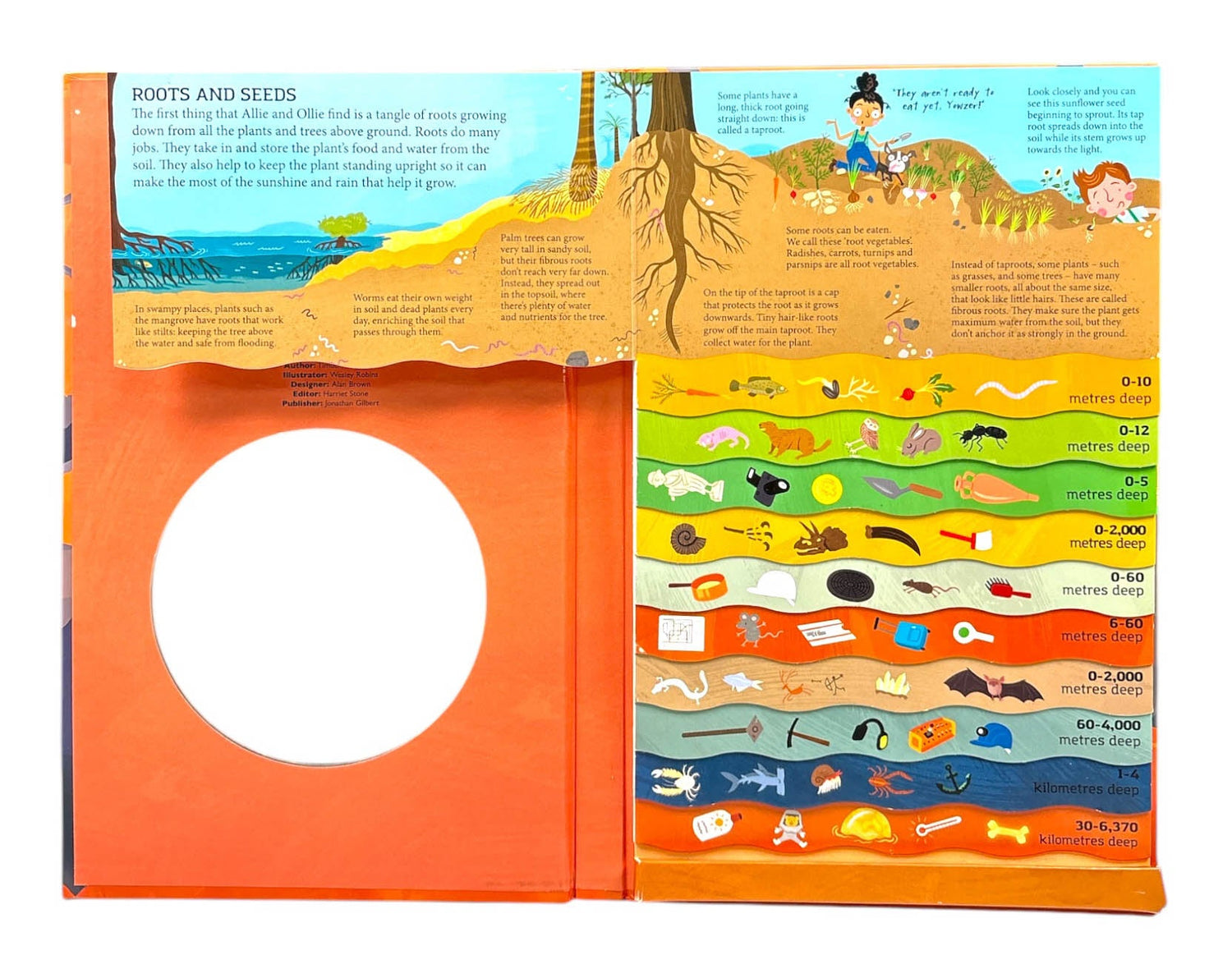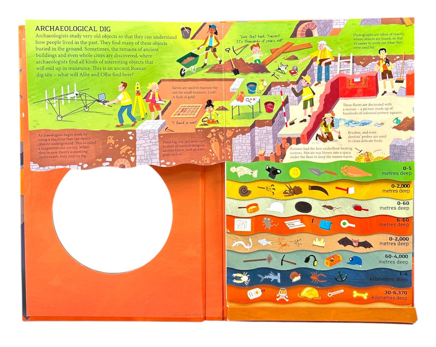 Dig miles under ground to unearth what is below our feet. With a seek and find challenge on each layer