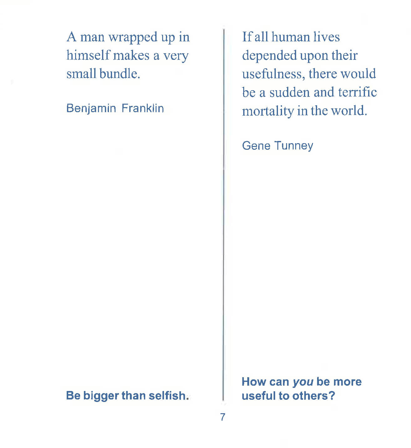 Challenging quotes and encouraging notes to move you into action! Contributing to others brings value to yourself. School tests what's in your head. Life tests what's in your heart. Showering another with respect is cleansing for both parties. No one thrives in this world alone. We all need one another. The best way to reach your goals is to help others reach theirsand hundreds more!