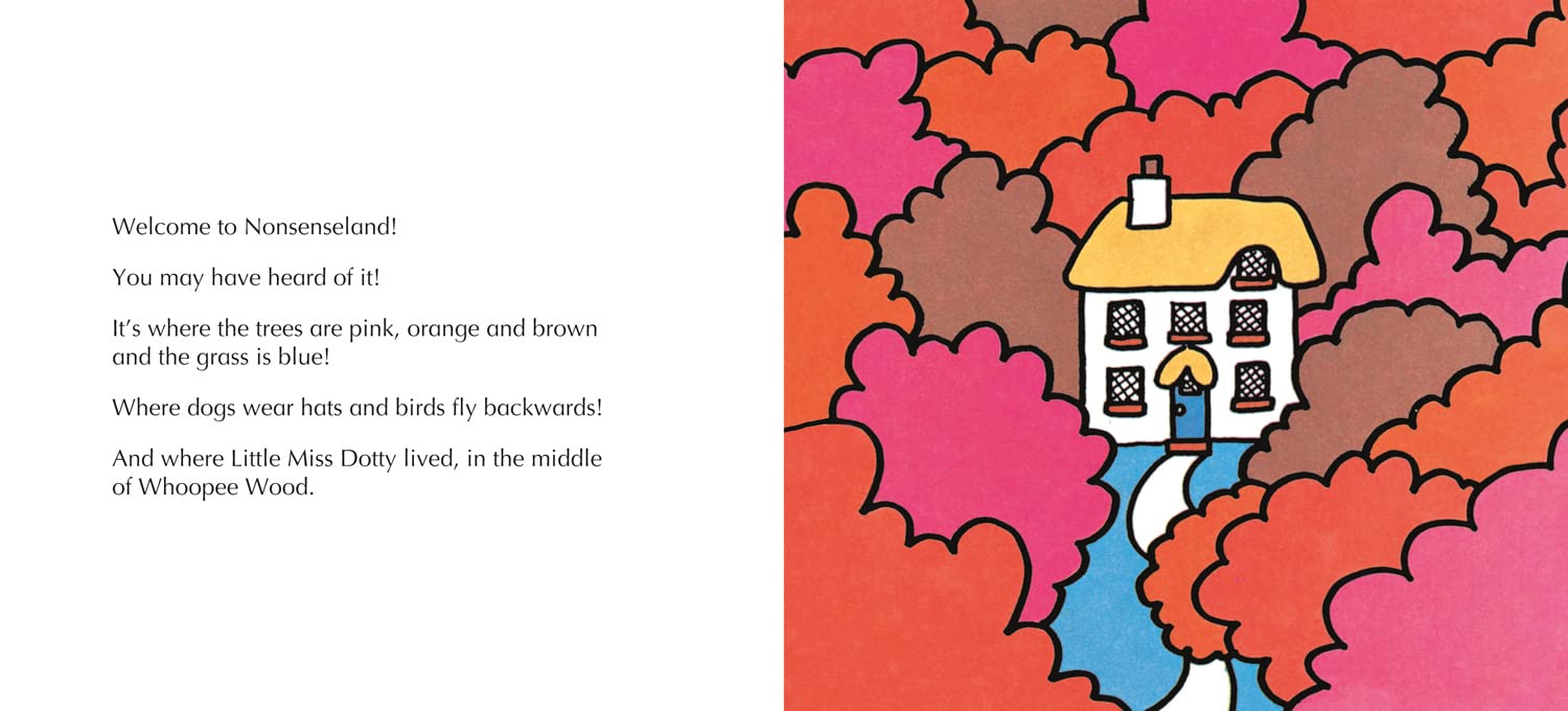 Little Miss Dotty lives in Nonesense Land in the middle of Whoopee Wood. Will she win the cup for dottiest idea of the year?