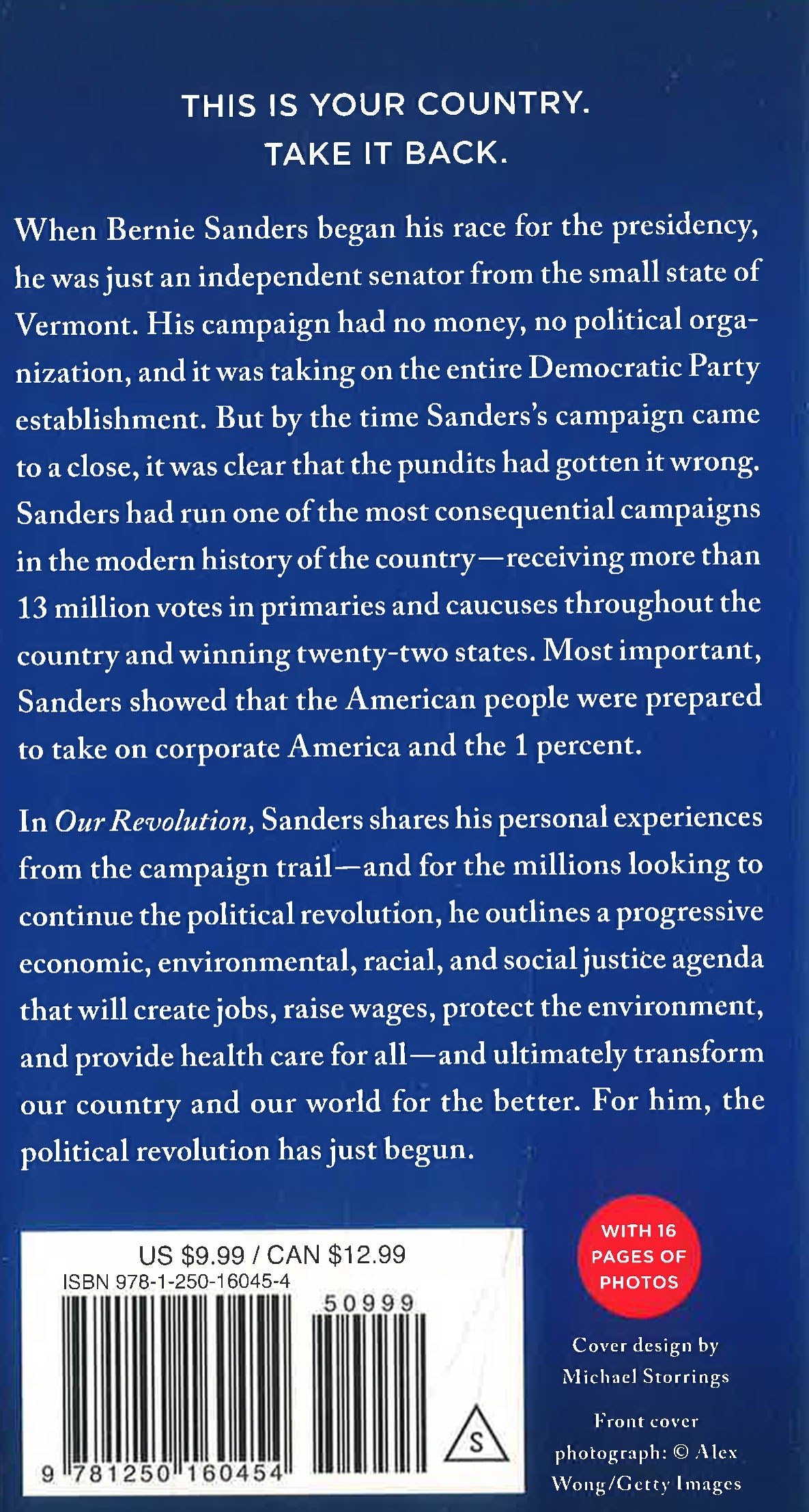 In Our Revolution, Sanders shares his personal experiences from the campaign trail and for the millions looking to continue the political revolution, he outlines a progressive economic, environmental, racial, and social justice agenda that will create jobs, raise wages, protect the environment, and provide health care for all―and ultimately transform our country and our world for the better. For him, the political revolution has just begun.