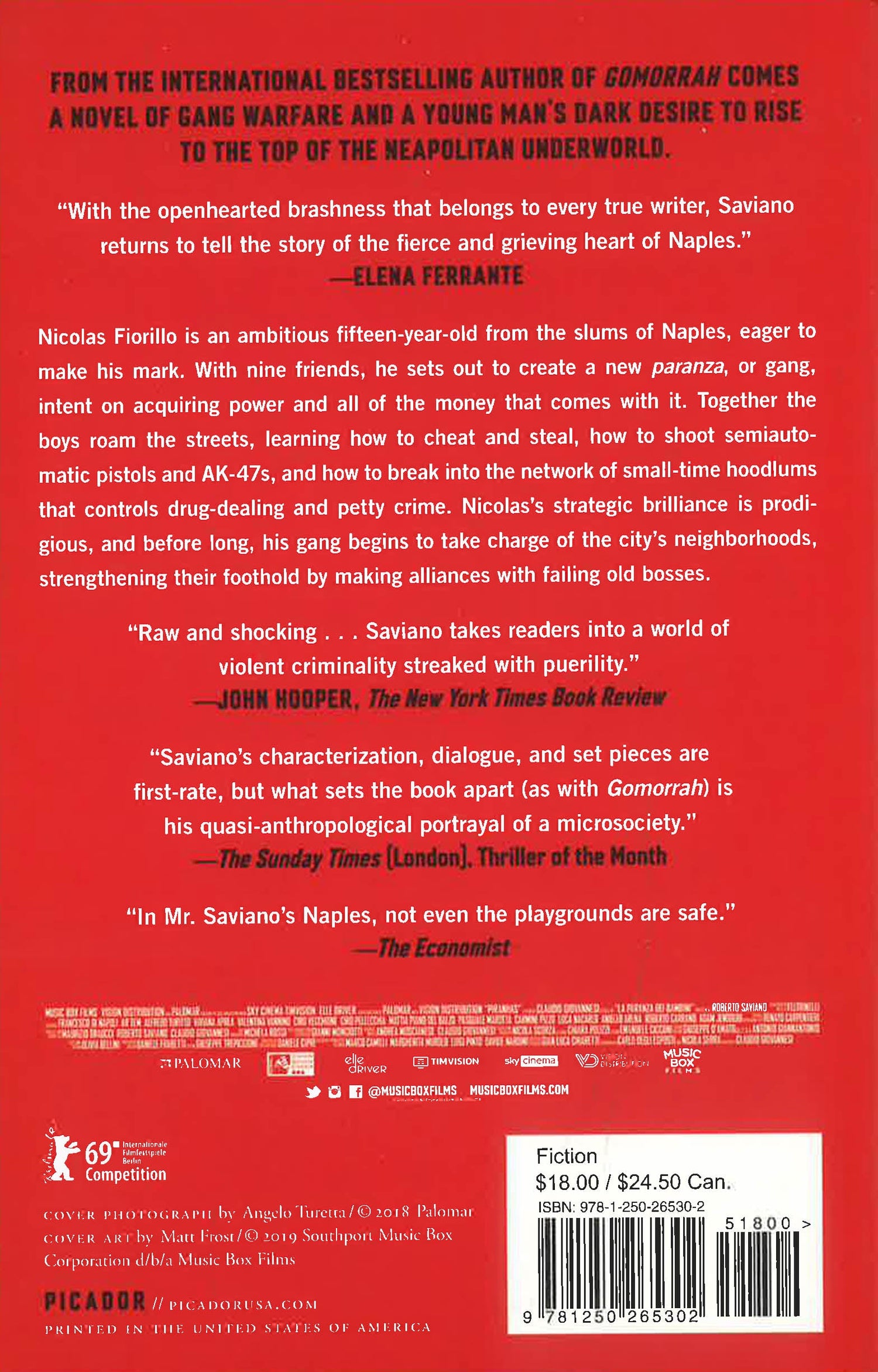 Nicolas Fiorillo is a brilliant and ambitious fifteen-year-old from the slums of Naples, eager to make his mark and to acquire power and the money that comes with it. With nine friends, he sets out to create a new paranza, or gang. Together they roam the streets on their motorscooters, learning how to break into the network of small-time hoodlums that controls drug-dealing and petty crime in the city. They learn to cheat and to steal, to shoot semiautomatic pistols and AK-47s. Slowly they begin to wrest control of the neighborhoods from enemy gangs while making alliances with failing old bosses. Nicolas's strategic brilliance is prodigious, and his cohorts' rapid rise and envelopment in the ensuing maelstrom of violence and death is riveting and impossible to turn away from. In The Piranhas, Roberto Saviano imagines the lurid glamour of Nicolas's story with all the vividness and insight that made Gomorrah a worldwide sensation.
