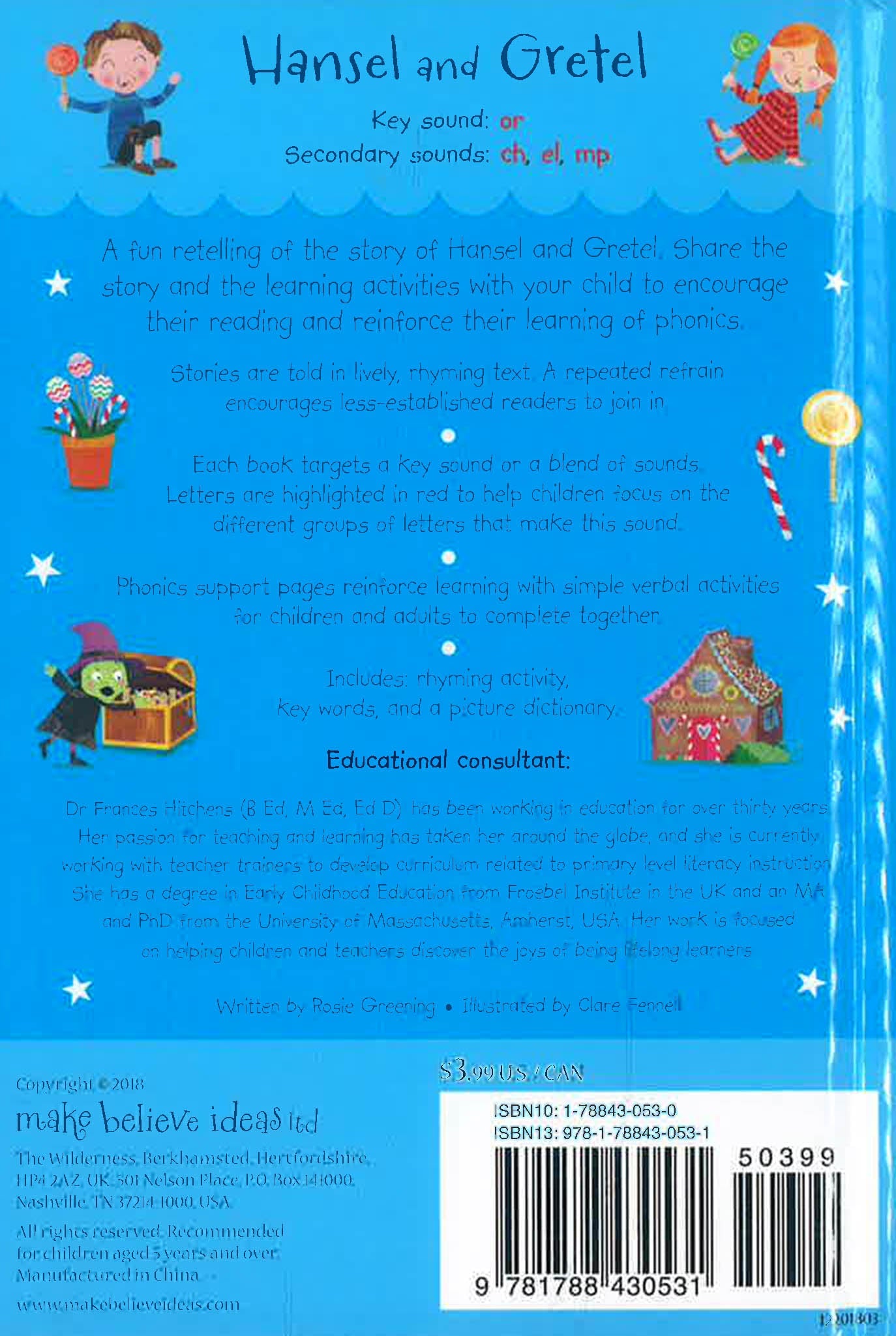 A fun retelling of the story of Hansel and Gretel in lively, rhyming text. Share the story and learning activities with your child to encourage their reading and reinforce their learning of phonics. This book targets the "or" sound. Includes rhyming activity, sight words, and picture dictionary.