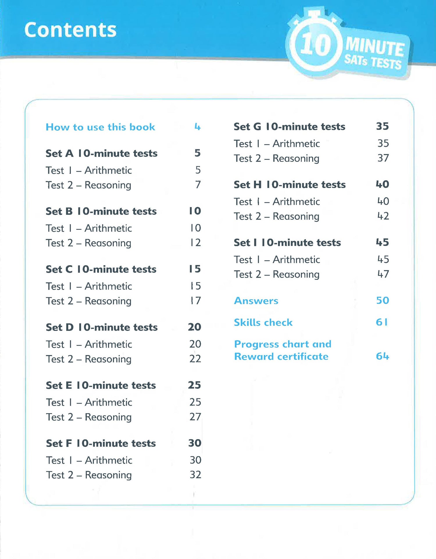 Just like the real thing - only shorter! This book offers nine complete sets of mini-tests including Reasoning and Arithmetic papers in each set. Question types and mark schemes match the format of the National tests and offer an authentic SATs experience, though the flexible format allows them to be used at any time of the day. A handy progress chart is also supplied to give you some indication of the scores your child is likely to attain. A skills check section will also help you to identify all of the key maths skills your child needs to be successful in the SATs tests.