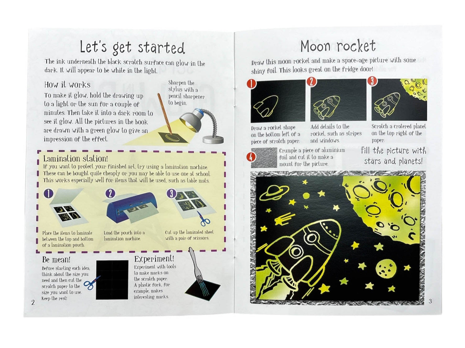 - Fabulous scratch kit with large A5 glow-in-the-dark card