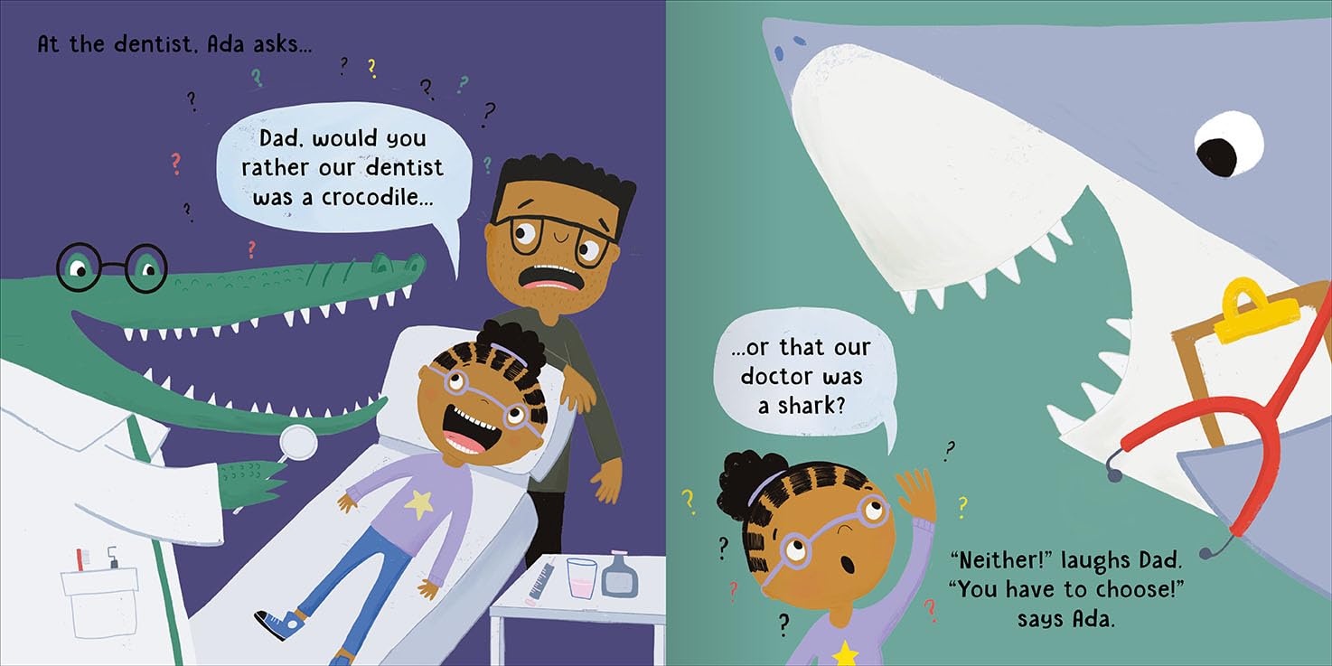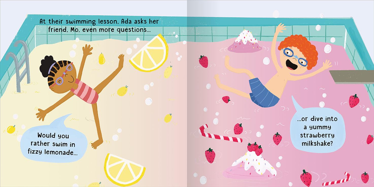 Young readers will love this quirky story of a little girl called Ada who can’t stop asking questions. Would you rather swim in lemonade, or dive into a milkshake? This age-old game is perfectly transformed into a picture book story with hilarious results. Laugh out loud with this story, written by Claire Philip and illustrated throughout with bold and colourful artwork by Abi Tompkins. • A simple, funny book, perfect for children to share at storytime or read by themselves • Humourous contemporary story that will get kids thinking about all sorts of silly hypotheticals • Spark children’s imaginations with original and interesting stories • Bold, colourful, appealing artwork
