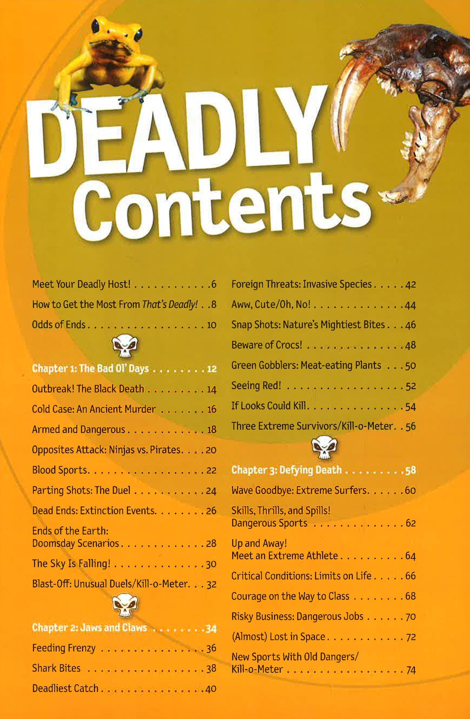 Put on your suit of armor and grab your bear spray because it's time to explore the deadly side of things. This is the perfect book for curious boys and girls who want the real scoop on predators, natural disasters, and dangerous jobs.