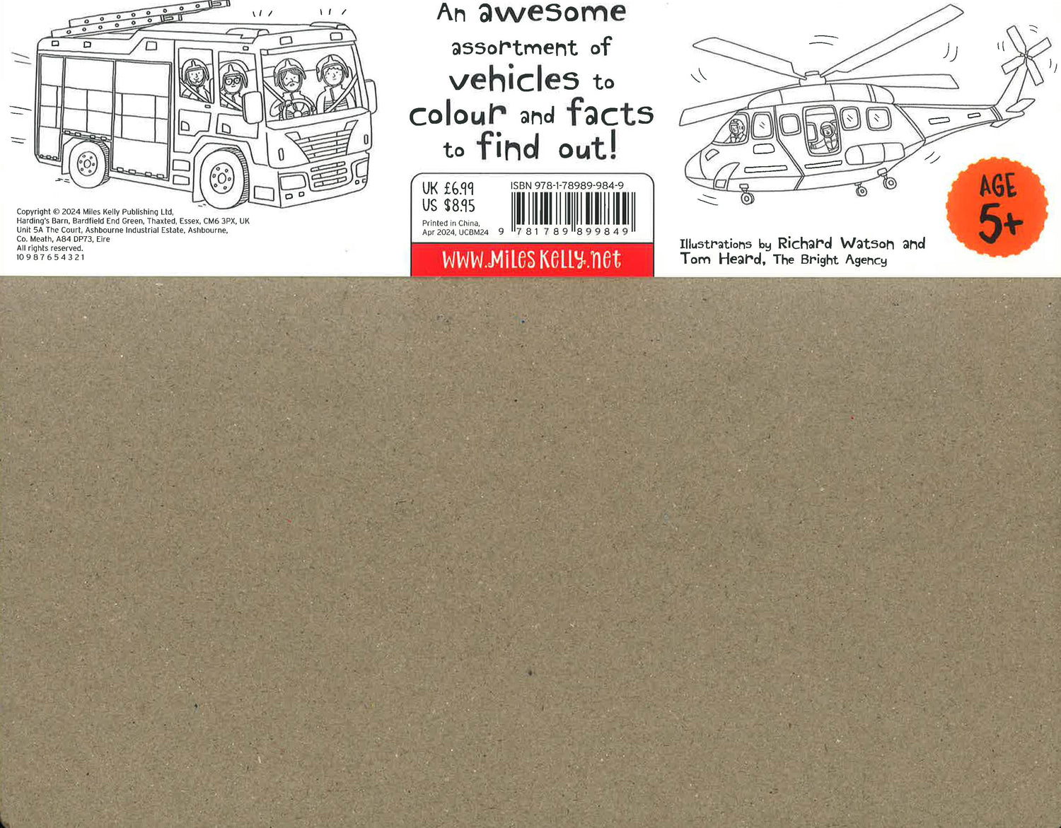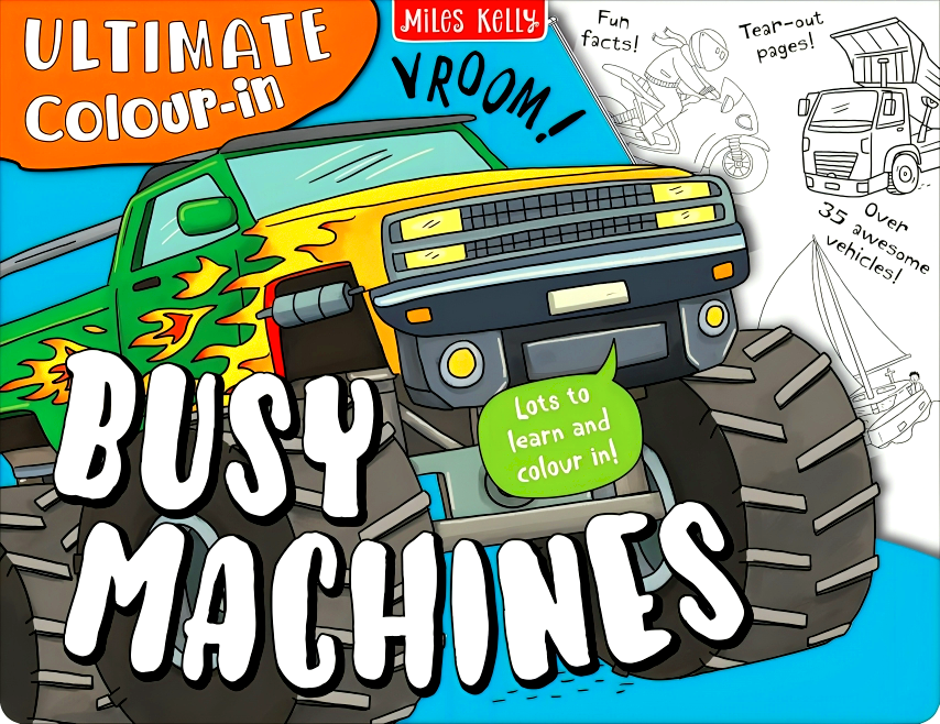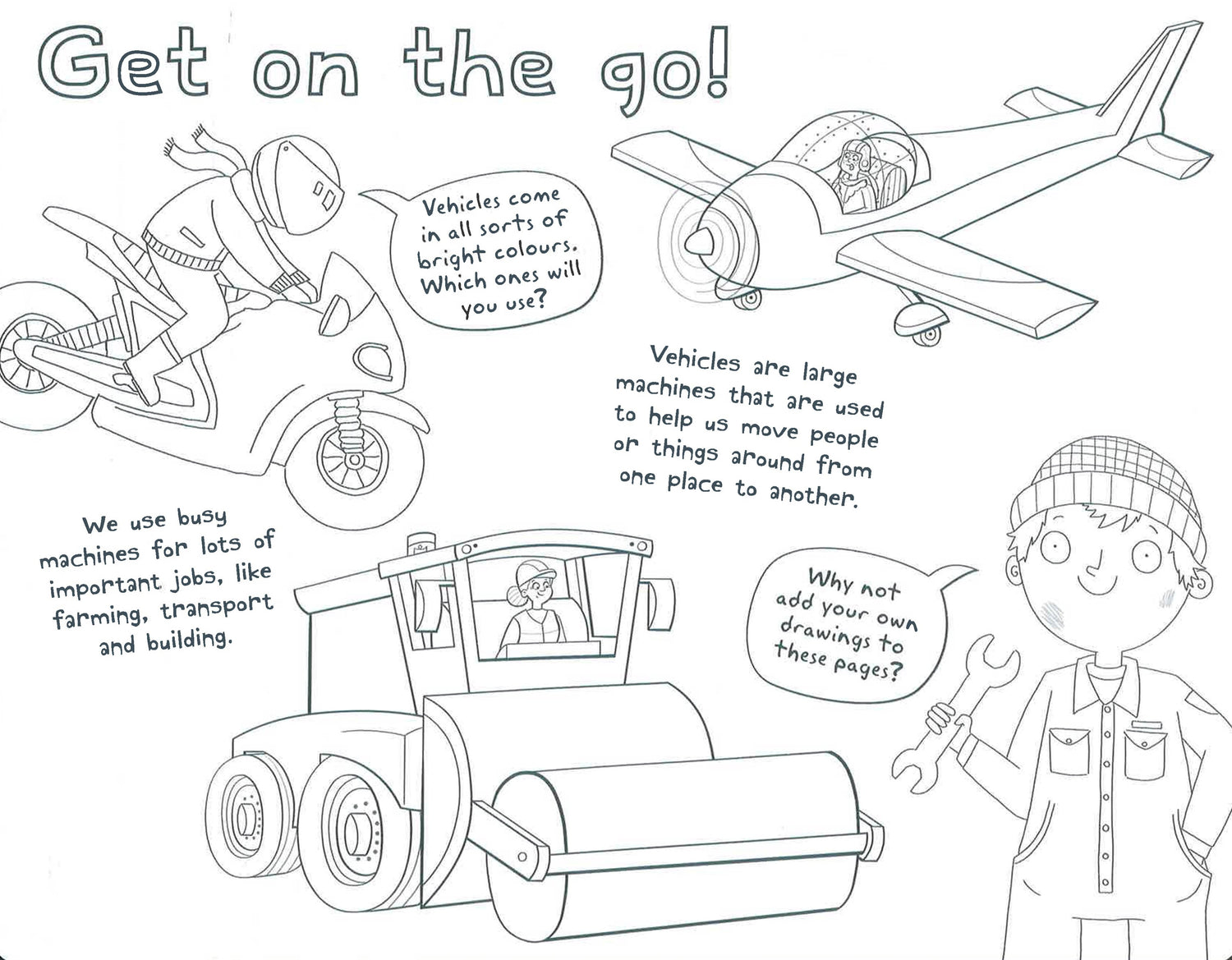 Young children can get creative and learn all about the exciting world of vehicles with this fantastically fun colouring book. Each tear-out page features a different type of vehicle or machine to colour, and is packed with amazing facts to engage and enthrall. With so much to enjoy throughout, children will be endlessly entertained by their favourite busy machines. • 32 tear-out pages to colour in, each featuring a different type of vehicle or machine • Every page packed with fun facts and new vehicle vocabulary to learn • Charming black and white illustrations with plenty of details to encourage creativity