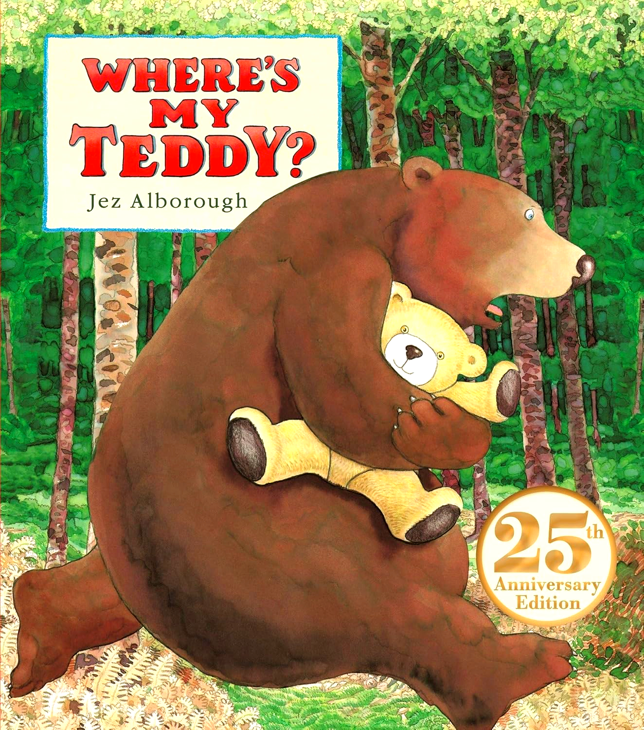 Eddy’s lost his teddy, Freddy, so he goes off into the woods in search of the missing bear. The dark, horrible woods hold a gigantic surprise for Eddy, who discovers his teddy bear has grown much too big to cuddle. Could it be a case of mistaken identity? Fast-paced and fun, this comedy of errors from beloved children’s illustrator Jez Alborough has delighted young readers for two and a half decades.