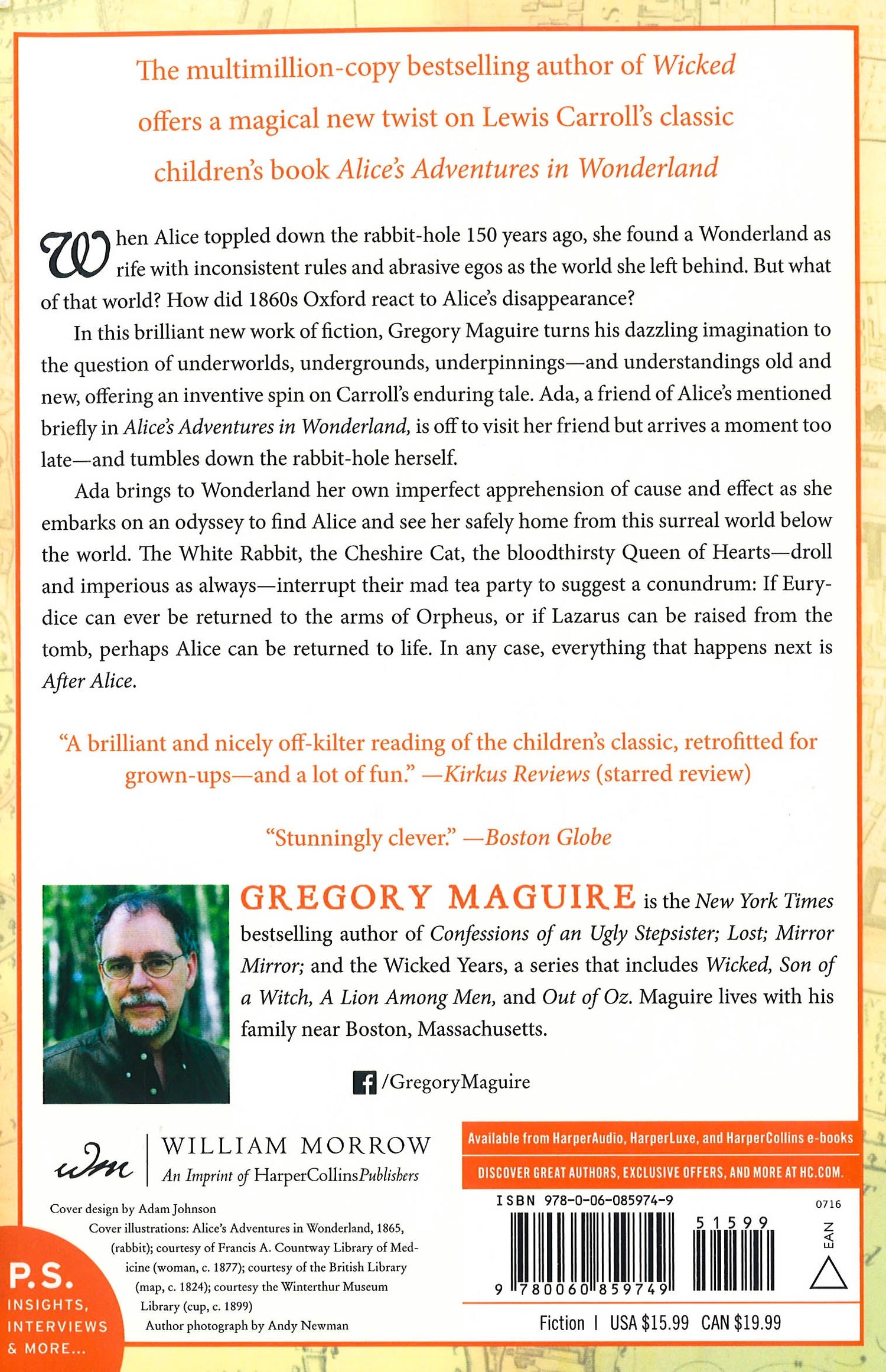 From the multi-million-copy bestselling author of Wicked comes a magical new twist on Alice's Adventures in Wonderland, published to coincide with the 150th anniversary of Lewis's Carroll's beloved classic. When Alice toppled down the rabbit-hole 150 years ago, she found a Wonderland as rife with inconsistent rules and abrasive egos as the world she left behind. But what of that world? How did 1860s Oxford react to Alice's disappearance? In this brilliant work of fiction, Gregory Maguire turns his dazzling imagination to the question of underworlds, undergrounds, underpinnings--and understandings old and new, offering an inventive spin on Carroll's enduring tale. Ada, a friend of Alice's mentioned briefly in Alice's Adventures in Wonderland, is off to visit her friend, but arrives a moment too late--and tumbles down the rabbit-hole herself. Ada brings to Wonderland her own imperfect apprehension of cause and effect as she embarks on an odyssey to find Alice and see her safely home from this surreal world below the world. If Eurydice can ever be returned to the arms of Orpheus, or Lazarus can be raised from the tomb, perhaps Alice can be returned to life. Either way, everything that happens next is "After Alice."