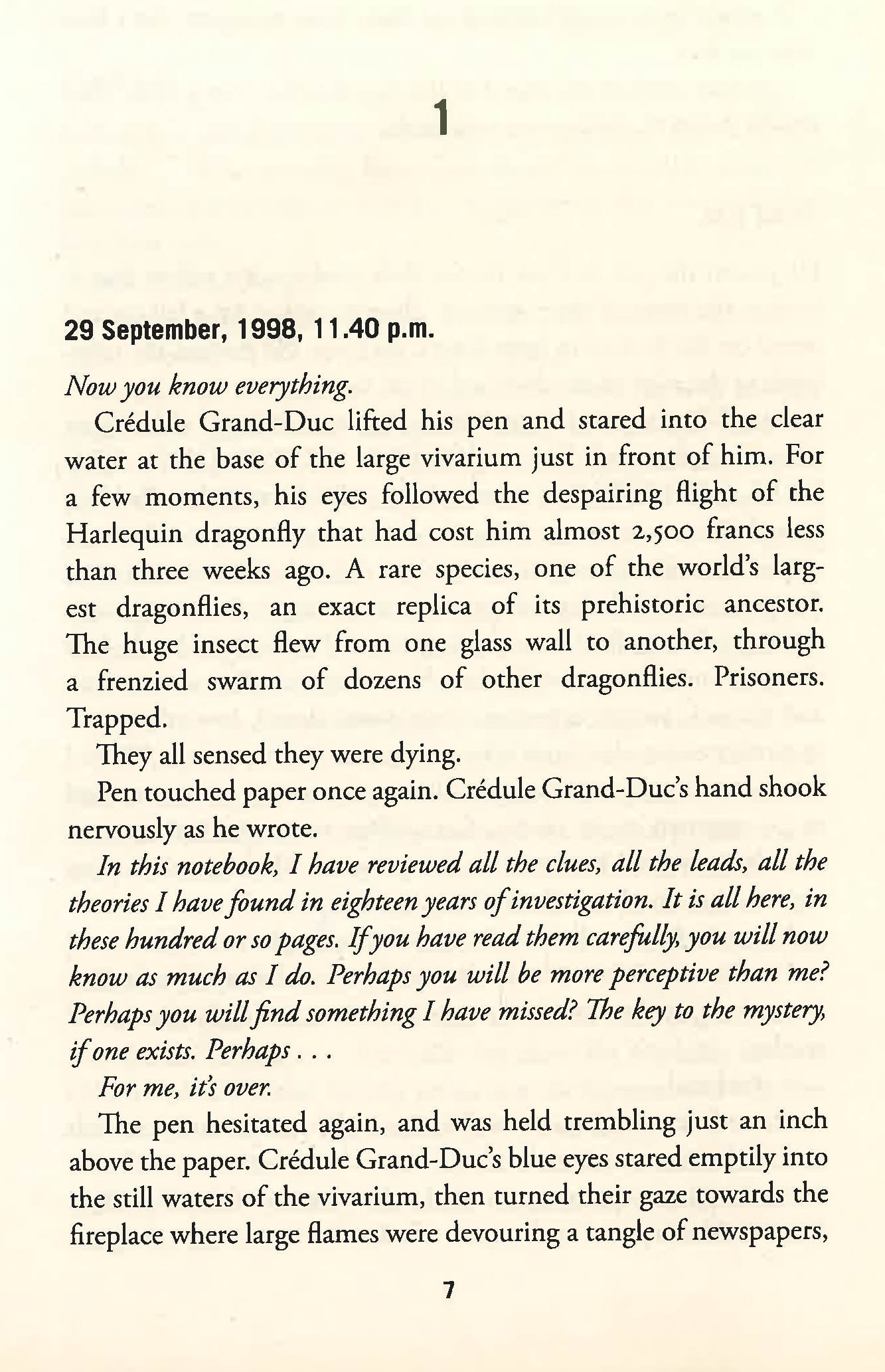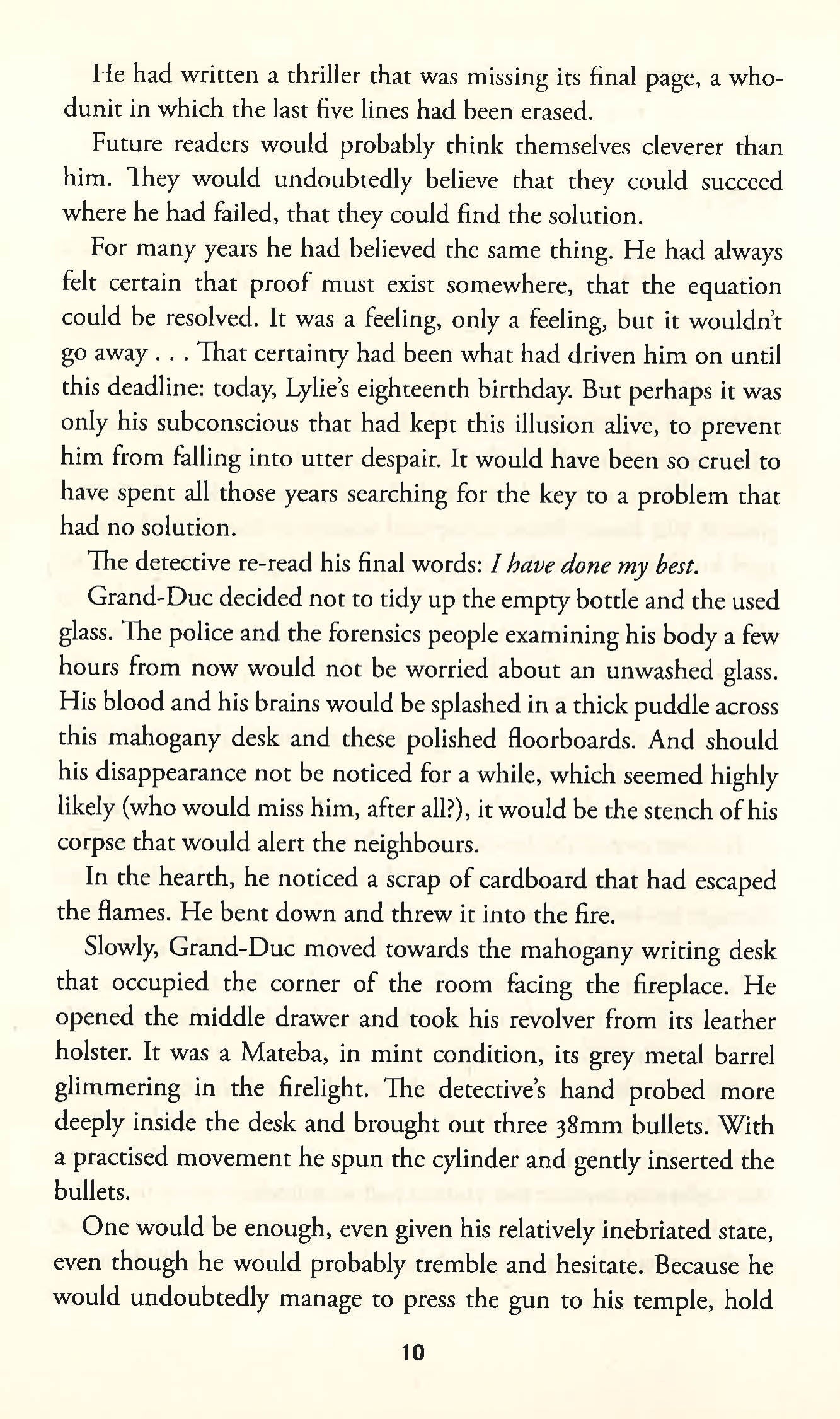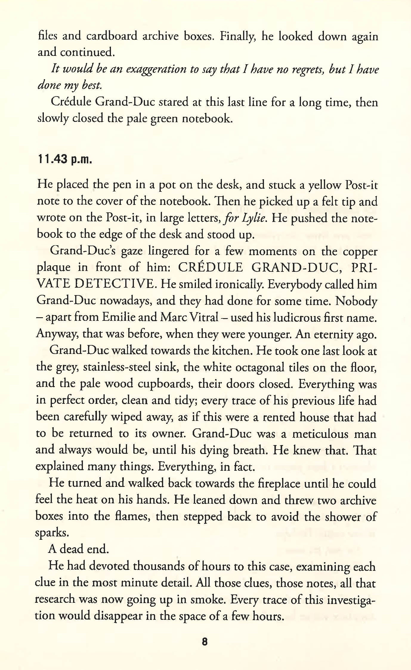 Eighteen years later, having failed to discover the truth, private detective Crédule Grand-Duc plans to take his own life, but not before placing an account of his investigation in the girl's hands. But, as he sits at his desk about to pull the trigger, he uncovers a secret that changes everything - then is killed before he can breathe a word of it to anyone . . .