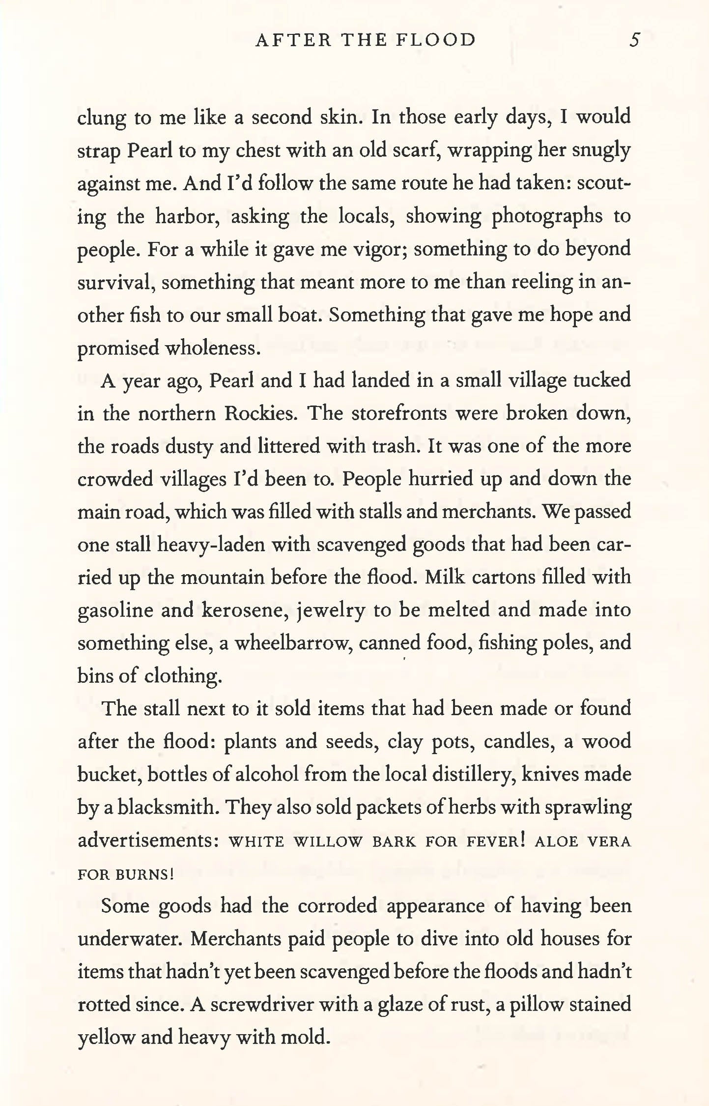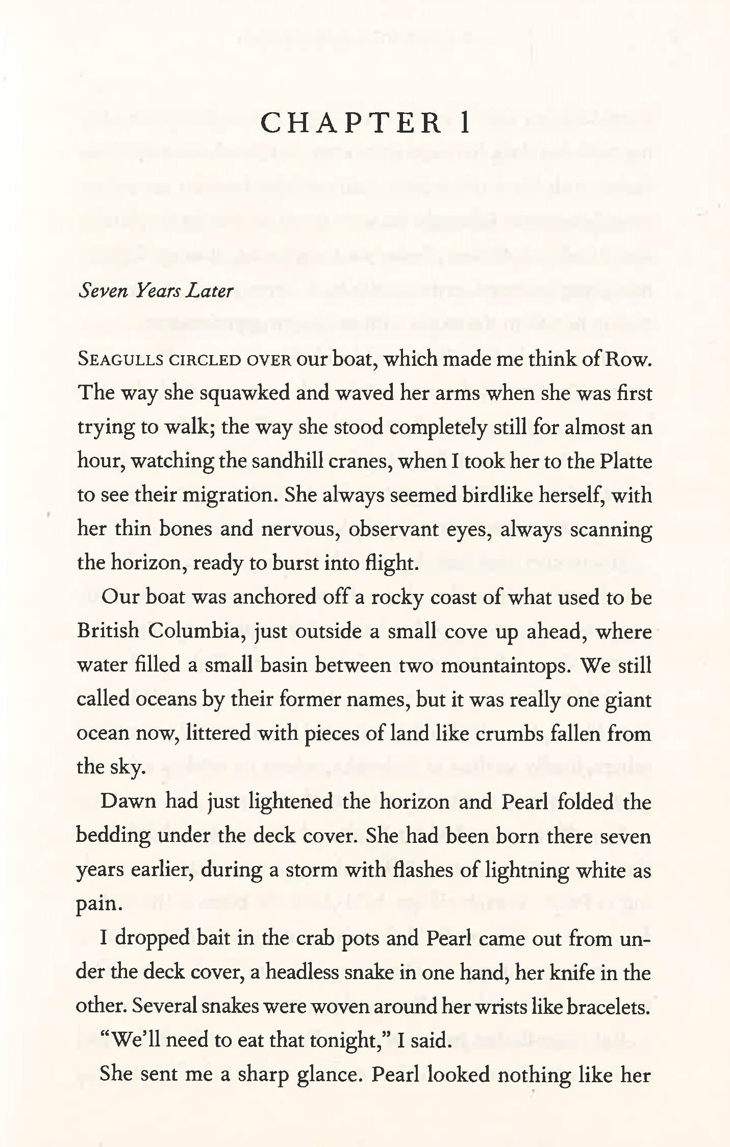 Children think we make them, but we don't ... They come into the world and make us. They make us by breaking us first. 'Utterly gripping' Karin Slaughter 'Impossible to put down' Booklist 'Undeniable, brilliantly written' Theodore Wheeler 'Thrilling' Lydia Kang The world is mostly water when Pearl is born. The floods have left America a cluster of small islands with roving trade ships and raiders. Pearl knows little of her father Jacob and elder sister Row, who left her mother Myra when she was pregnant with her. Between them they make do, with Myra fishing and trading to make ends meet, travelling from island to island on Bird, the boat Myra's grandfather made before he died. Whilst their life is a tranquil one, Myra still aches for the daughter she once lost. When a chance encounter reveals that Row might still be alive, Myra packs up six-year-old Pearl and together they begin a dangerous voyage to The Valley, where rumours of violence and breeding ships run rampant. Along the way they encounter death and strangers, finally finding solace on board Sedna - full to the brim with supplies and an able crew - where Myra feels like she might be closer to finding Row than she has ever been. But to get to Row she will have to deceive everyone around her, betraying the trust of those she's come to love, and ask herself if she's willing to sacrifice everything and everyone for what might be nothing at all.