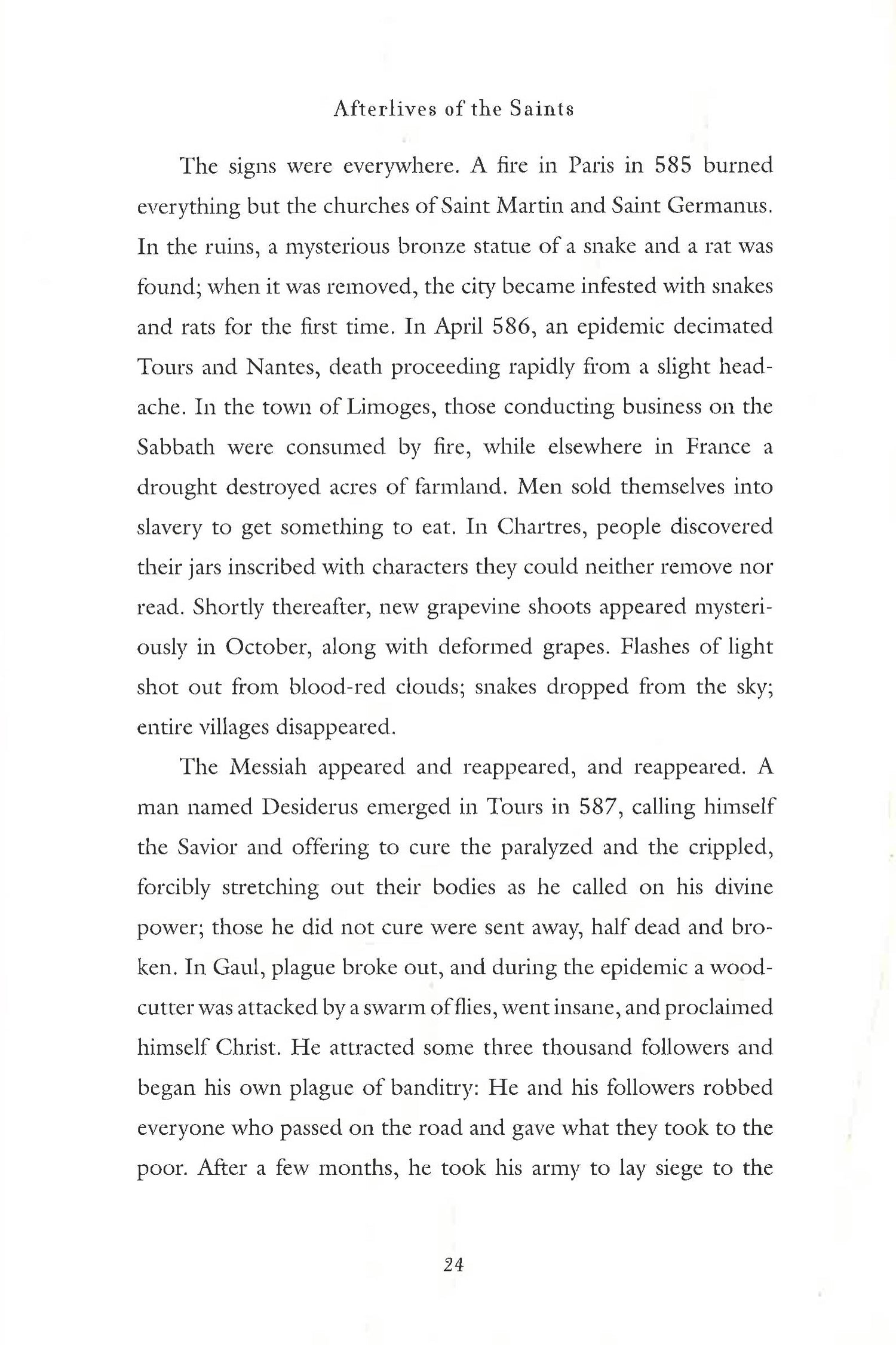 Afterlives of the Saints is a woven gathering of groundbreaking essays that move through Renaissance anatomy and the Sistine Chapel, Borges’ "Library of Babel," the history of spontaneous human combustion, the dangers of masturbation, the pleasures of castration, “and so forth” — each essay focusing on the story of a particular (and particularly strange) saint.