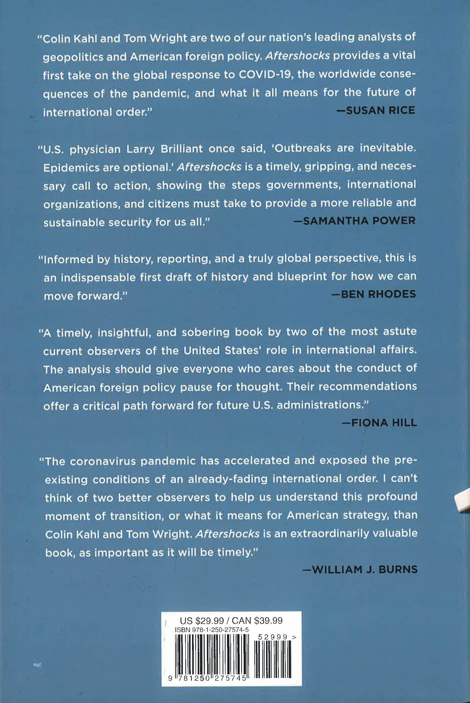 Colin Kahl and Thomas Wright's Aftershocks offers a riveting and comprehensive account of one of the strangest and most consequential years on record. Drawing on interviews with officials from around the world and extensive research, the authors tell the story of how nationalism and major power rivalries constrained the response to the worst pandemic in a century. They demonstrate the myriad ways in which the crisis exposed the limits of the old international order and how the reverberations from COVID-19 will be felt for years to come.