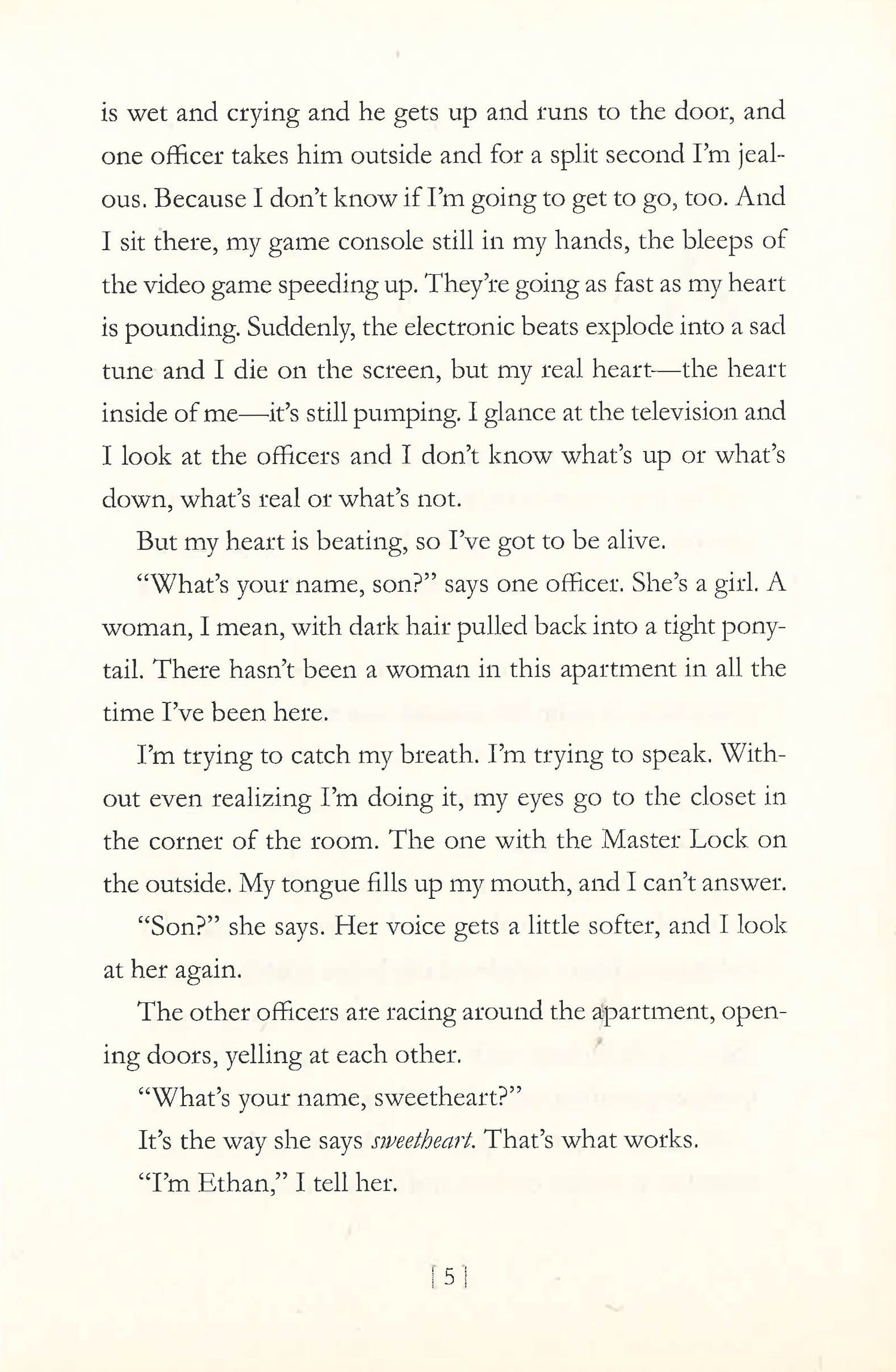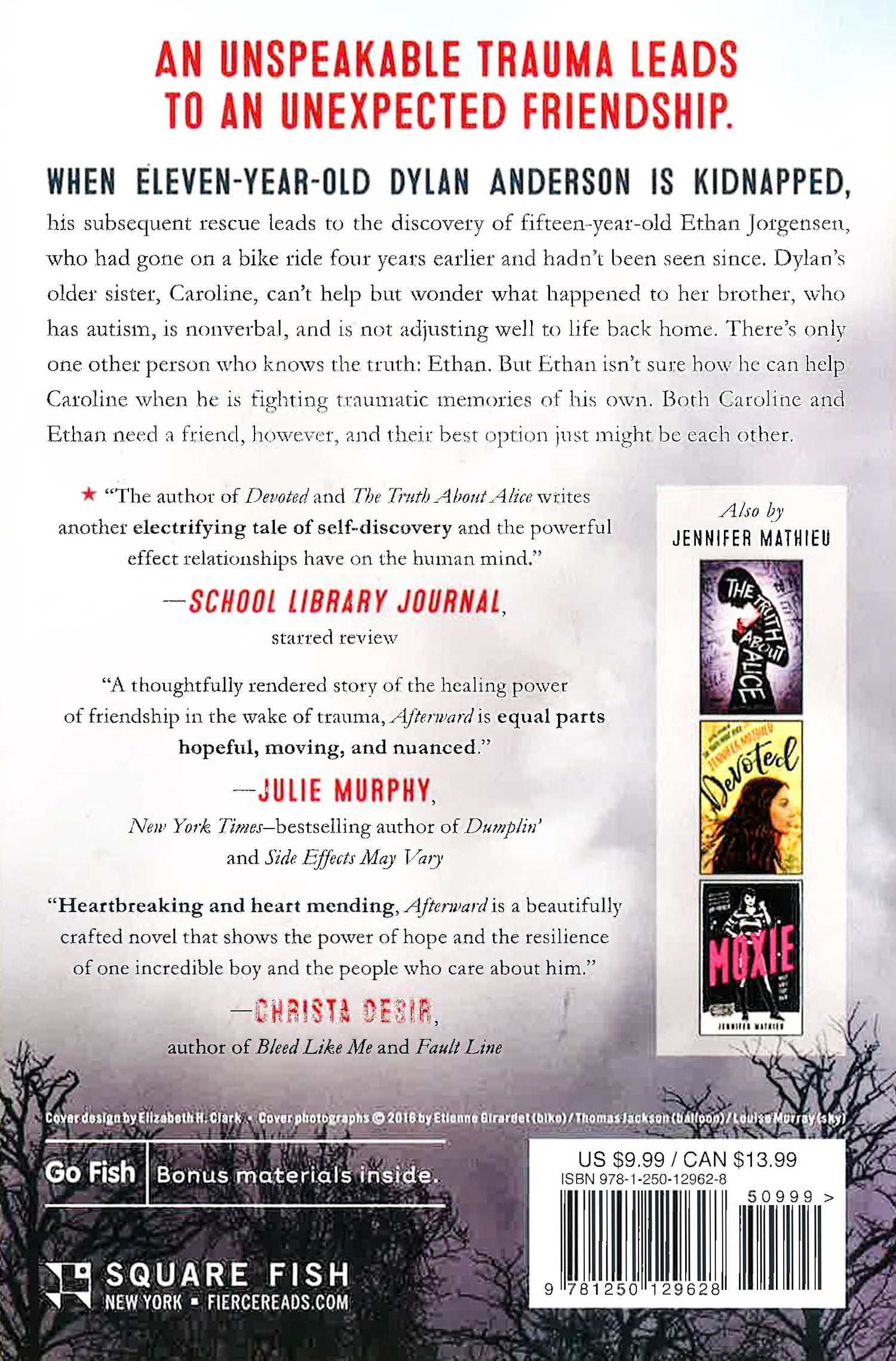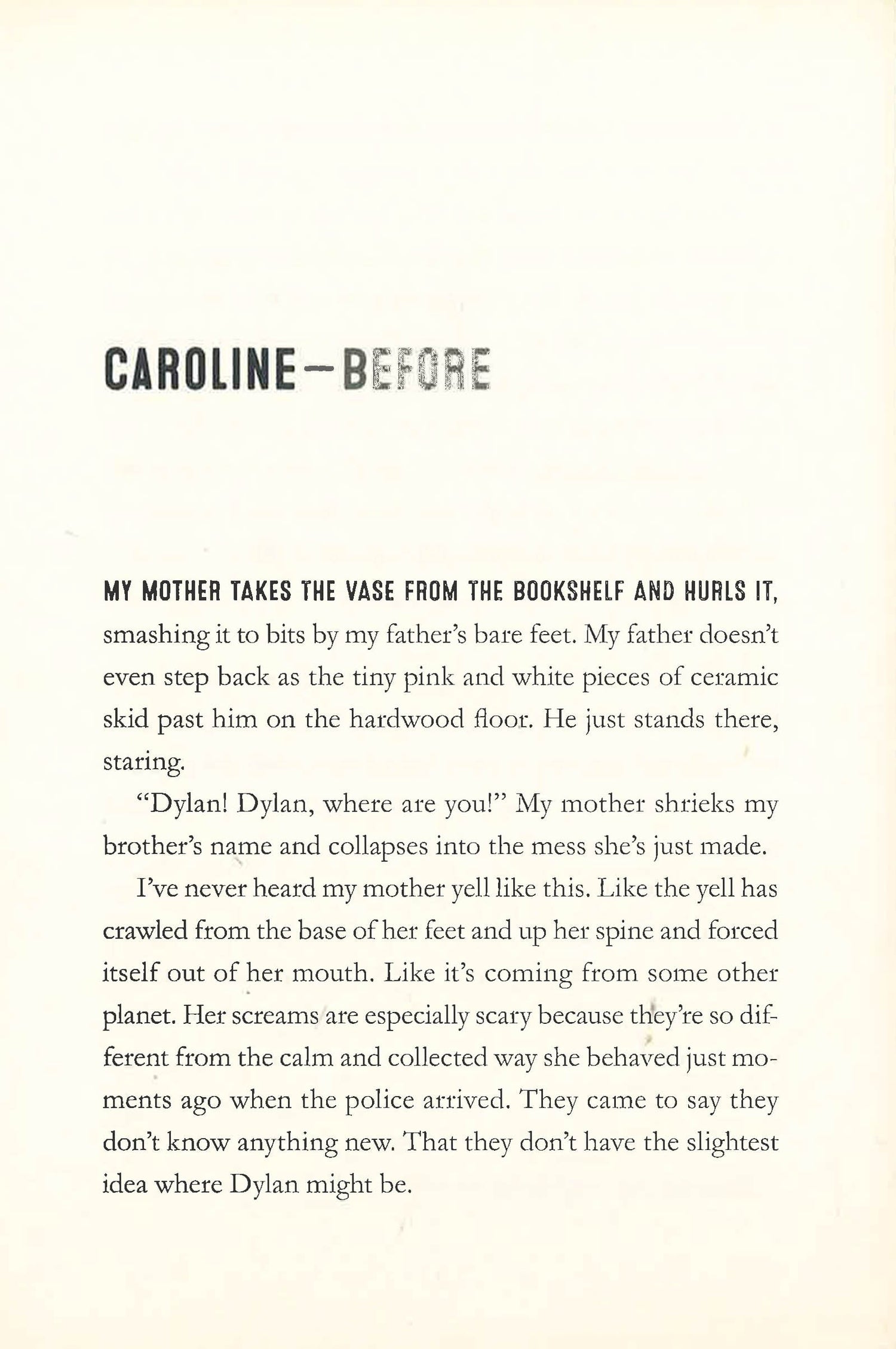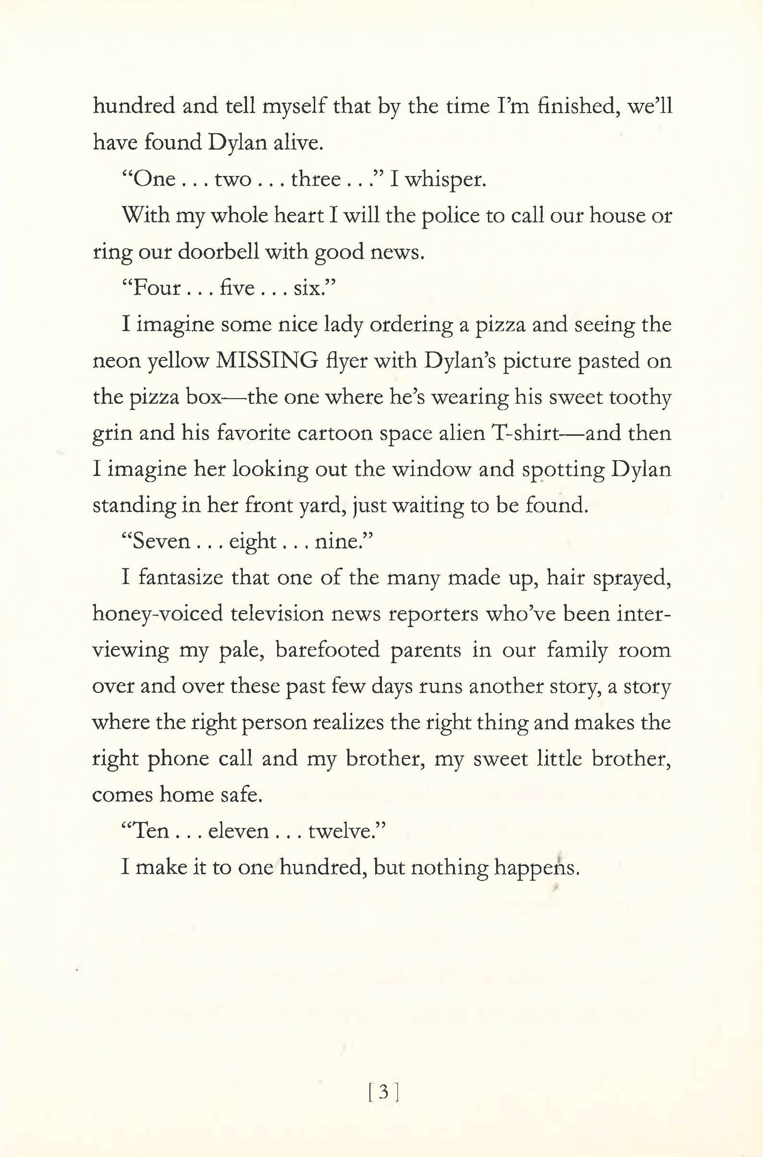 When eleven-year-old Dylan Anderson is kidnapped, his subsequent rescue leads to the discovery of fifteen-year-old Ethan Jorgensen, who had gone on a bike ride four years earlier and had never been seen again. Dylan's older sister, Caroline, can't help but wonder what happened to her brother, who is autistic and nonverbal and is not adjusting well to life back home. There's only one person who knows the truth: Ethan. But Ethan isn't sure how he can help Caroline when he is fighting traumatic memories of his own captivity. Both Caroline and Ethan need a friend, however, and their best option just might be each other.