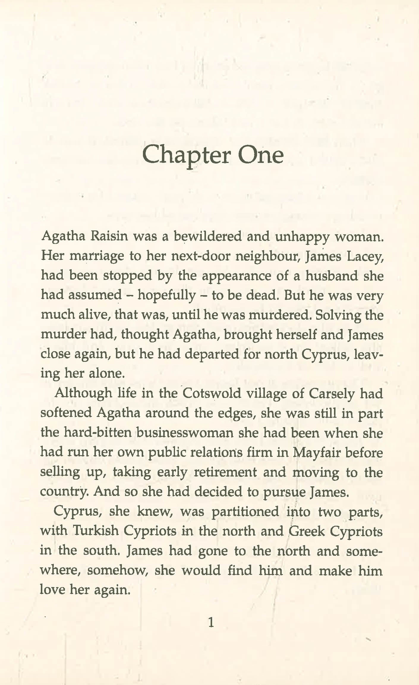 In this sixth entertaining outing Agatha leaves the sleepy Cotswold village of Carsely to pursue love - and finds a murderer. Spurned at the altar, she follows her fleeing fiance James Lacey to Cyprus, where, instead of enjoying the honeymoon they'd planned, they witness the killing of an obnoxious tourist in a disco. Intrigue and a string of murders surround the unlikely couple, in a plot as scorching as the Cypriot sun!