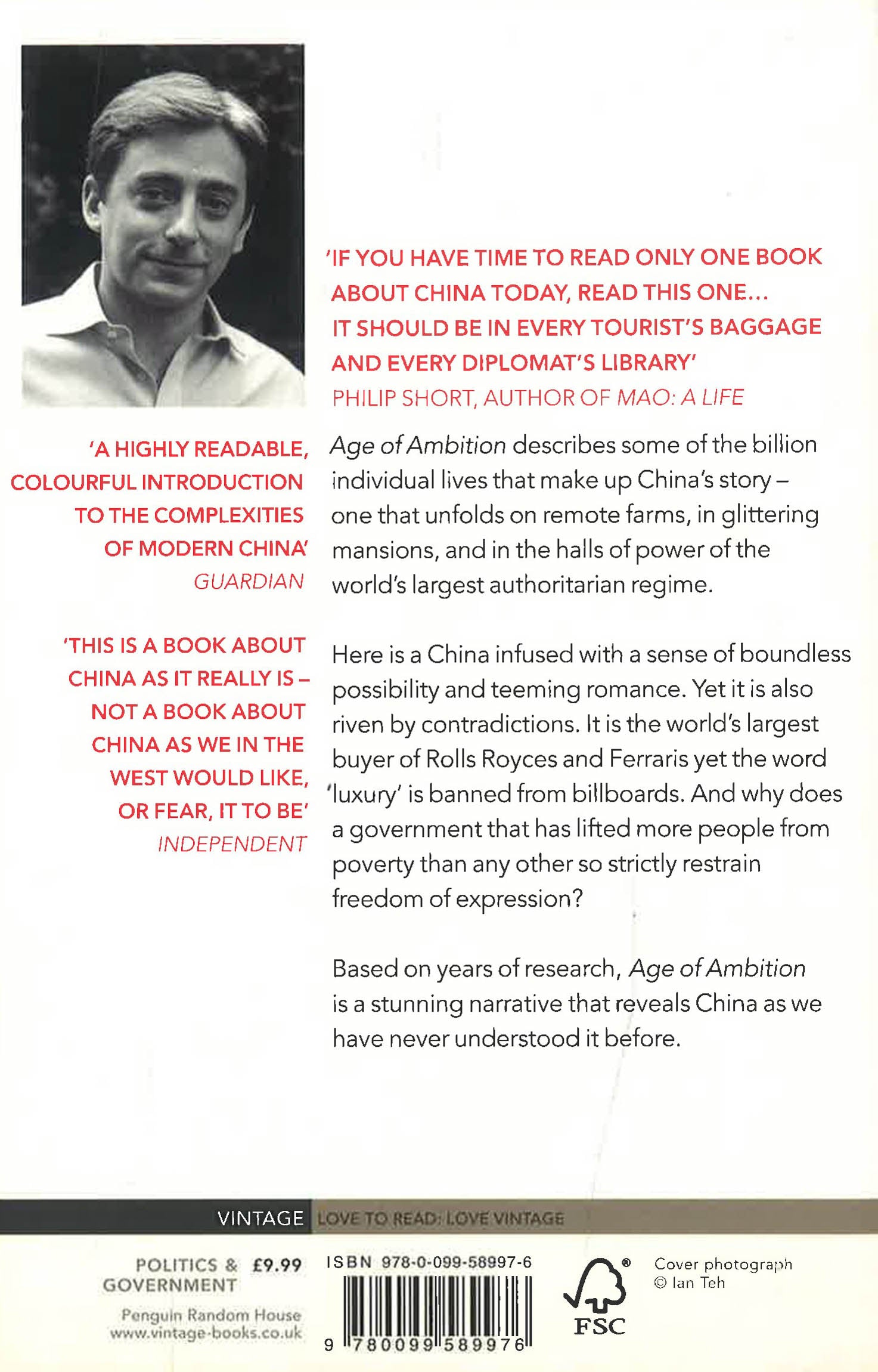 *WINNER OF THE NATIONAL BOOK AWARD 2014*A young army captain who risked execution to swim from free-market Taiwan to Communist China.A barber who made $150 million in the gambling dens of Macau. The richest woman in China, a recycling tycoon known as the 'Wastepaper Queen'. Age of Ambition describes some of the billion individual lives that make up China's story - one that unfolds on remote farms, in glittering mansions, and in the halls of power of the world's largest authoritarian regime. Together they describe the defining clash taking place today: between the individual and the Communist Party's struggle to retain control. Here is a China infused with a sense of boundless possibility and teeming romance. Yet it is also riven by contradictions. It is the world's largest buyer of Rolls Royces and Ferraris yet the word 'luxury' is banned from billboards. It has more Christians than members of the Communist Party. And why does a government that has lifted more people from poverty than any other so strictly restrain freedom of expression? Based on years of research, Age of Ambition is a stunning narrative that reveals China as we have never understood it before.