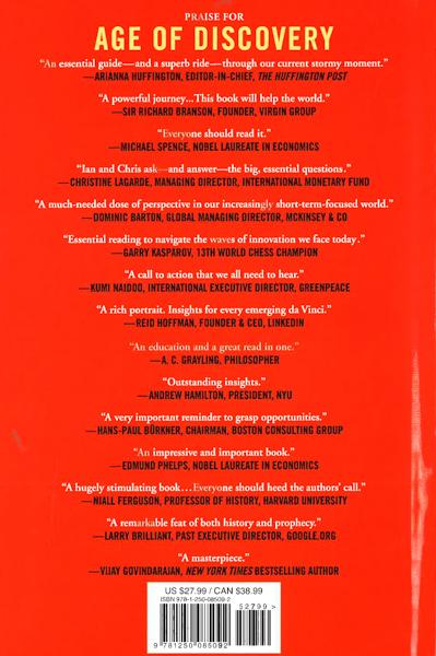 The present is a contest between the bright and dark sides of discovery. To avoid being torn apart by its stresses, we need to recognize the fact--and gain courage and wisdom from the past. Age of Discovery shows how. Now is the best moment in history to be alive, but we have never felt more anxious or divided. Human health, aggregate wealth and education are flourishing. Scientific discovery is racing forward. But the same global flows of trade, capital, people and ideas that make gains possible for some people deliver big losses to others--and make us all more vulnerable to one another. Business and science are working giant revolutions upon our societies, but our politics and institutions evolve at a much slower pace. That's why, in a moment when everyone ought to be celebrating giant global gains, many of us are righteously angry at being left out and stressed about where we're headed. To make sense of present shocks, we need to step back and recognize: we've been here before. The first Renaissance, the time of Columbus, Copernicus, Gutenberg and others, likewise redrew all maps of the world, democratized communication and sparked a flourishing of creative achievement. But their world also grappled with the same dark side of rapid change: social division, political extremism, insecurity, pandemics and other unintended consequences of discovery. Now is the second Renaissance. We can still flourish--if we learn from the first.
