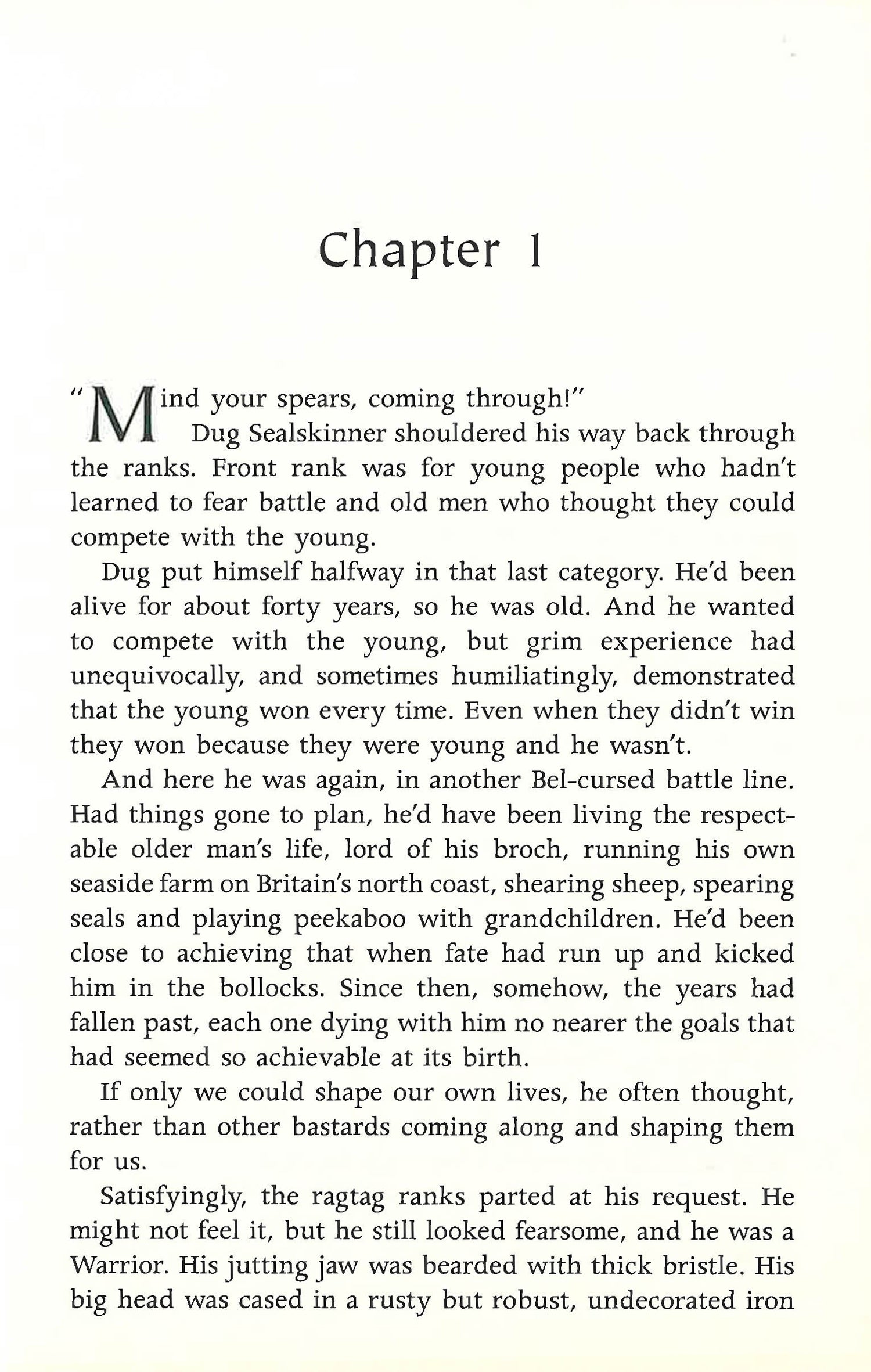 LEGENDS AREN'T BORN. THEY'RE MADE. Dug Sealskinner is a down-on-his-luck mercenary traveling south to join up with King Zadar's army. But he keeps rescuing the wrong people. First Spring, a child he finds scavenging on the battlefield, and then Lowa, one of Zadar's most fearsome warriors, who has vowed revenge on the king for her sister's execution. Now Dug's on the wrong side of the thousands-strong army he hoped to join -- and worse, Zadar has bloodthirsty druid magic on his side. All Dug has is his war hammer, one small child, and one unpredictable, highly-trained warrior with a lust for revenge that might get them all killed . . .