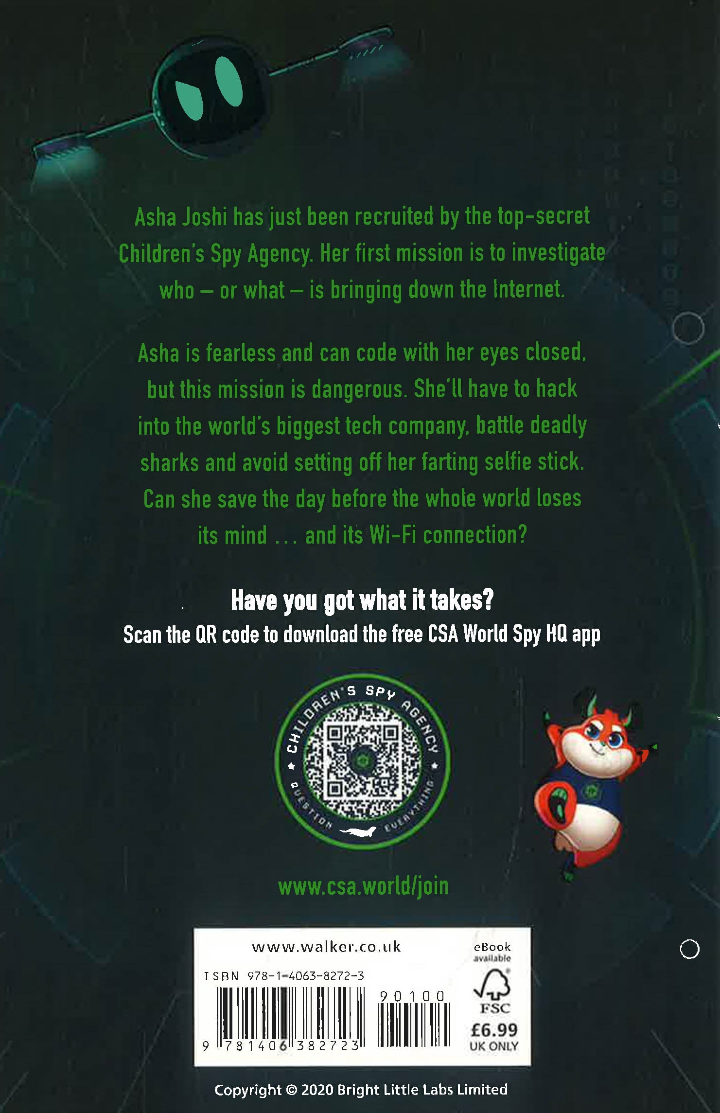Computer code just got dangerous in this action-packed spy adventure series Asha Joshi has the perfect excuse not to finish her homework. She's just been recruited to join the top-secret Children's Spy Agency. Her first mission: SAVE THE WORLD. Can she do it? Asha's a coder so she should be able to hack into the biggest tech company in the world, fight deadly sharks and figure out why the Internet has stopped working. All before bedtime. Easy, right? The story is a great way to engage young readers in coding, critical-thinking and STEM. It is mapped onto key National Curriculum Computing KS1 and KS2 concepts including algorithms, conditionals and debugging.