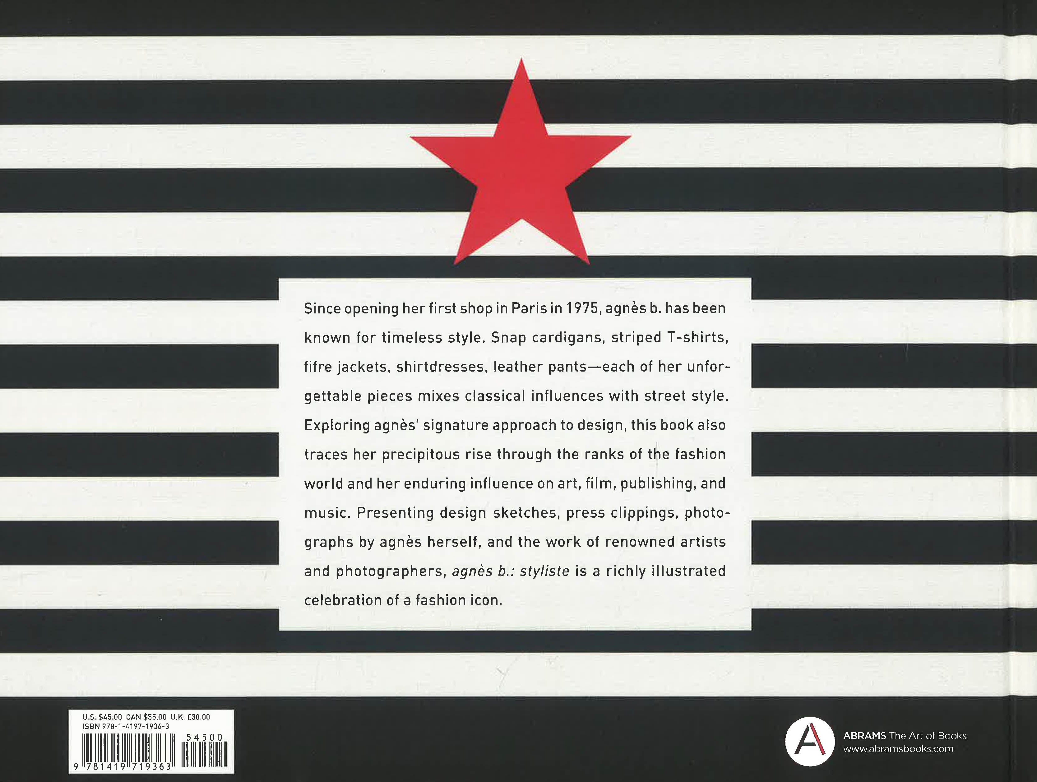 Since opening her first shop in Paris in 1975, agnes b. has been dedicated to creating timeless designs. Snap cardigans, striped T-shirts, strapless dresses, mini skirts, leather pants each of her unforgettable pieces mixes classical influences with street style. This richly illustrated clothbound book explores her signature approach to design, the history of the brand, and her continuing influence, which extends beyond fashion to the worlds of art, film, publishing, and music. Presenting design sketches, press clippings, photographs by agnes b., and the work of photographers such as Peter Lindbergh, Dominique Issermann, Ellen von Unwerth, Bruce Weber, Gilles Bensimon, and Jean-Baptiste Mondino, agnes b.: l'histoire celebrates the complexity and creativity of the agnes b. universe.