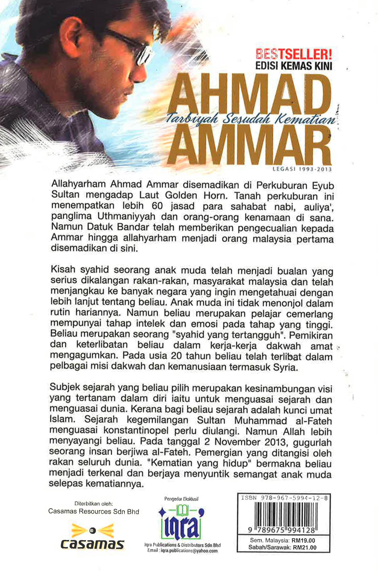 Mari kita hayati bersama akan kisah perjuangan seorang anak muda bernama Ahmad Ammar Ahmad Azam yang ingin matinya dalam keadaan syahid. Dapatkan novel ini sebagai iktibar dan panduan buat kita semua. Sungguh, umat kini sangat memerlukan lebih ramai lagi al-Fateh bagi membebaskan umat ini daripada cengkaman penjajahan Barat. Semoga kisah Ammar memberikan kesedaran kepada pemuda-pemuda di bumi Malaysia agar umur yang muda dimanfaatkan sebaik mungkin untuk Islam.