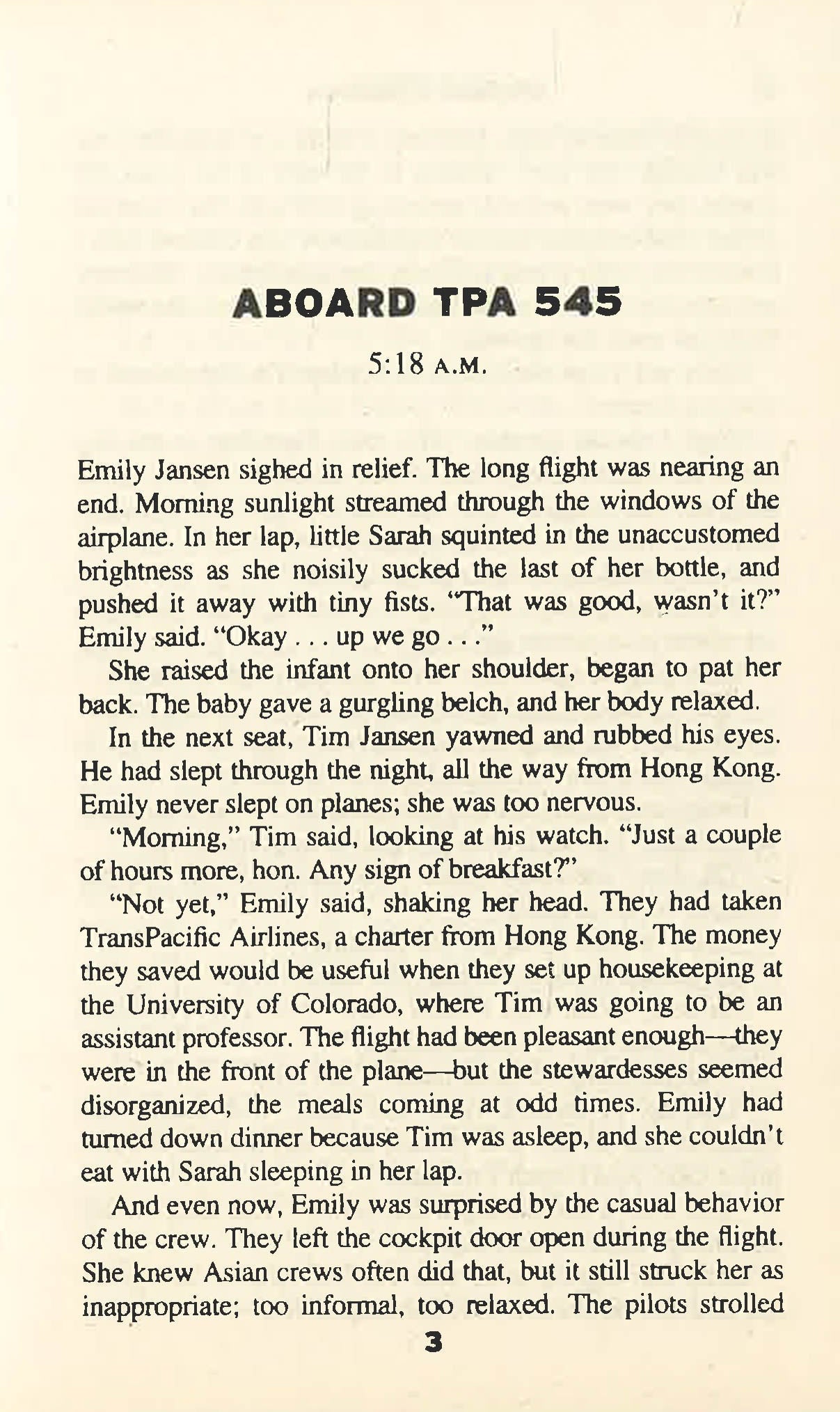 Airframe is a novel by the American writer Michael Crichton, first published in 1996, in hardcover, by Knopf and then in 1997, as a paperback, by Ballantine Books. The plot follows Casey Singleton, a quality assurance vice president at the fictional aerospace manufacturer Norton Aircraft, as she investigates an in-flight accident aboard a Norton-manufactured airliner that leaves three passengers dead and 56 injured.