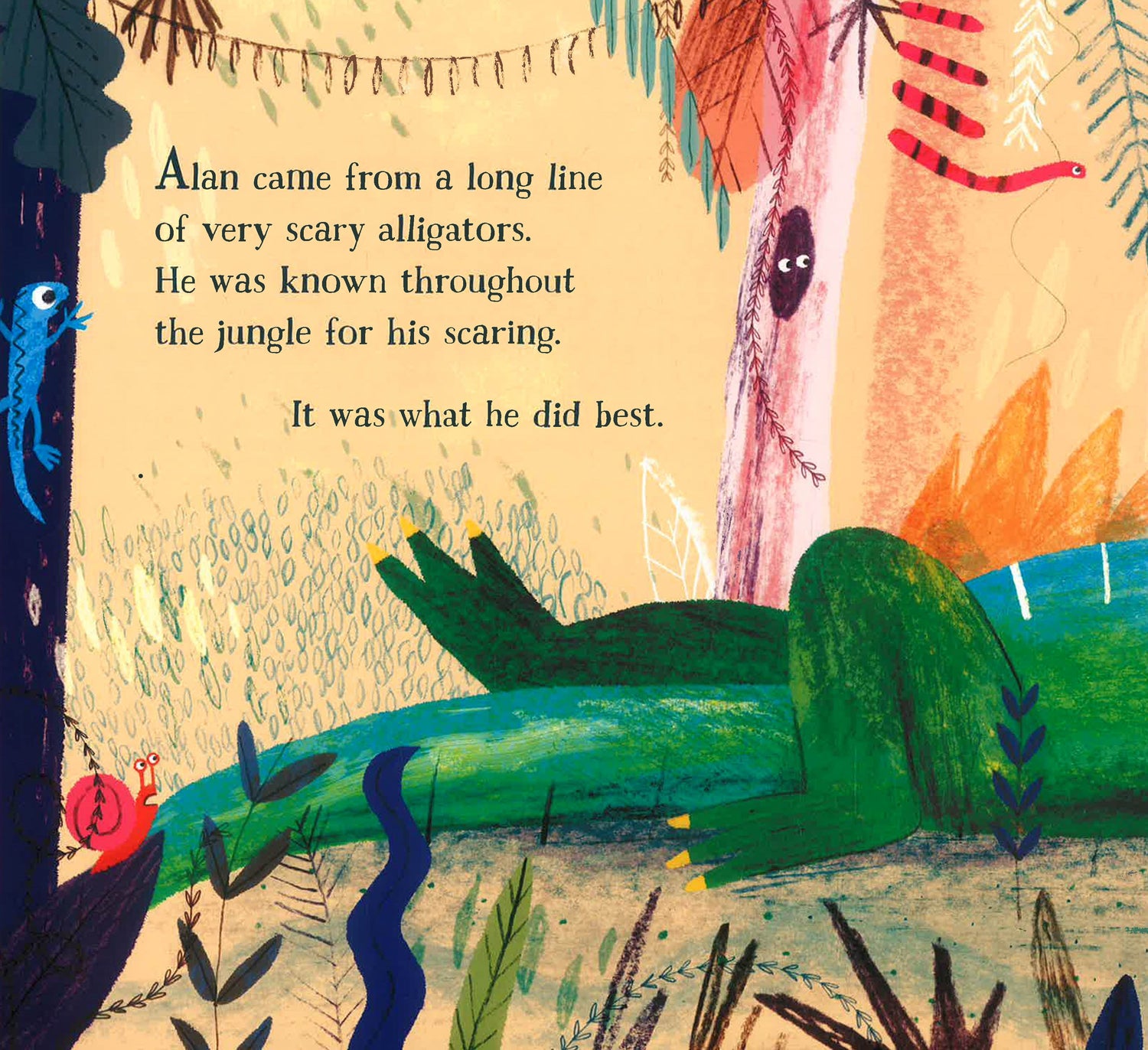 Meet Alan, an alligator with a secret. Famed for his big, scary teeth, he sneaks into the jungle every day to scare the jungle animals ..."I'm big, scary Alan! Fear my razor-sharp teeth!" But after a long day of scaring, Alan likes nothing better than to run a warm mud bath and take out his false teeth, which nobody knows about! That is, until his teeth go missing. What will Alan do now? Scaring is the only thing he knows how to do! Can he still be scary without them?