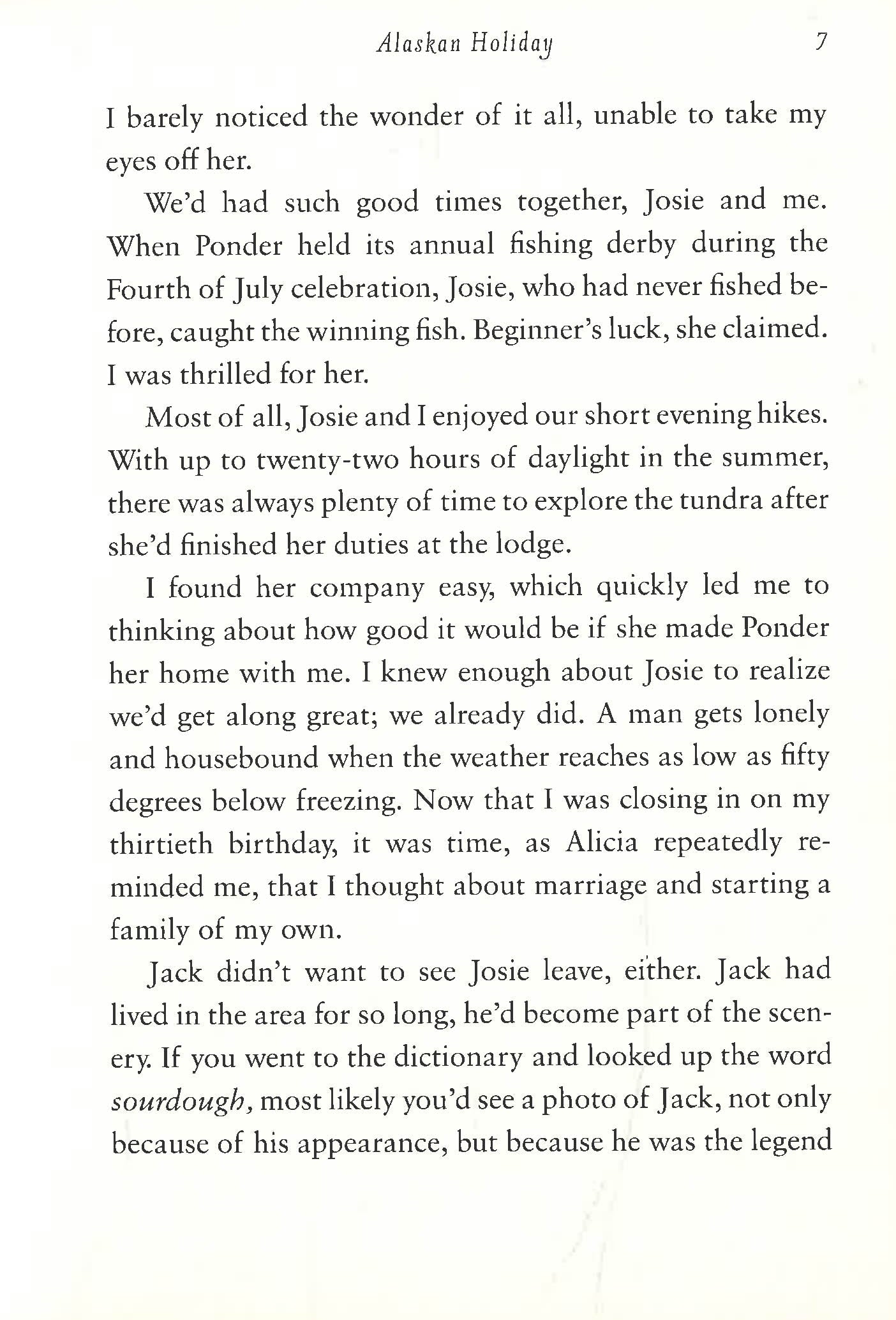 Josie and Palmer become close during the long Alaskan summer days, but Josie knows that, come fall, she’ll be returning to reality and the career she’s worked so hard for. Palmer, on the other hand, would like nothing better than to make Josie his wife and to keep her in Ponder. But Josie can’t imagine abandoning her mother back in the Emerald City and sacrificing her career to stay in this isolated town—not even for a man she’s quickly coming to love.