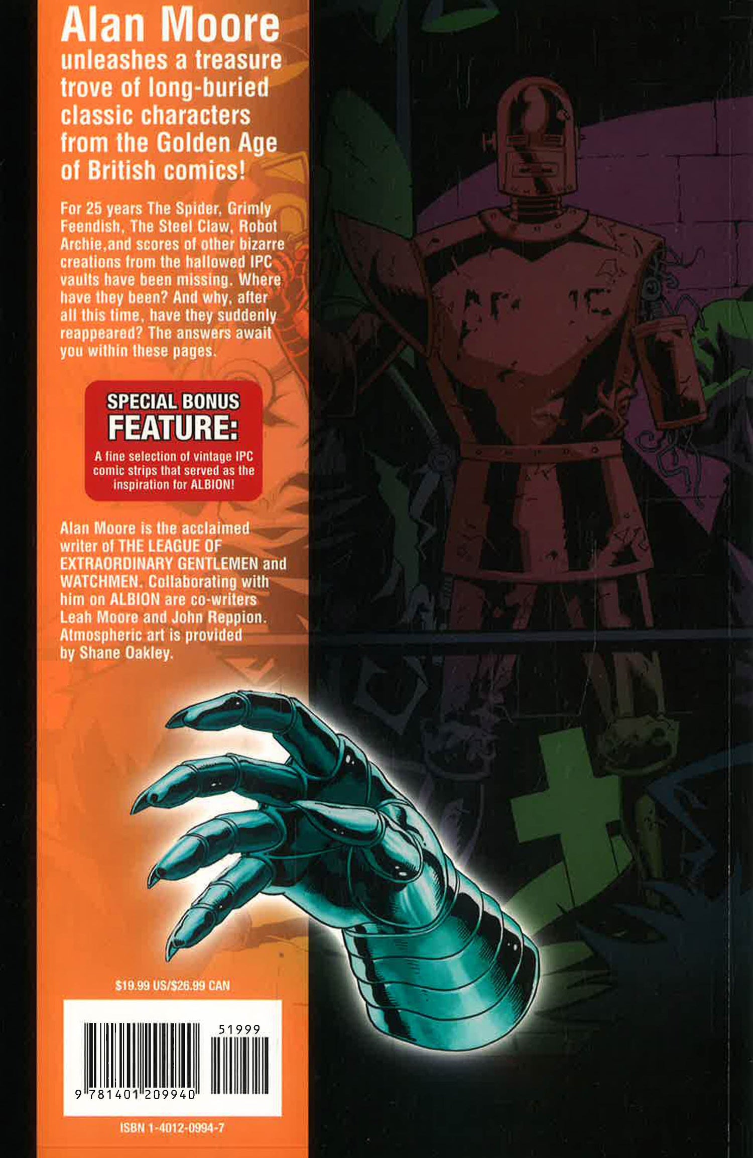 Plot by Alan Moore; Written by Leah Moore & John Reppion Art by Shane Oakley & George Freeman Cover by Dave Gibbons Discover how legendary writer Alan Moore resurrects the lost heroes of Britain’s yesteryear in this volume collecting the acclaimed ALBION miniseries! Find out who Robot Archie, the Steel Claw, Captain Hurrican and the Spider really were and where they’ve been all this time! Advance-solicited; on sale December 20 • 144 pg, FC, $19.99 US