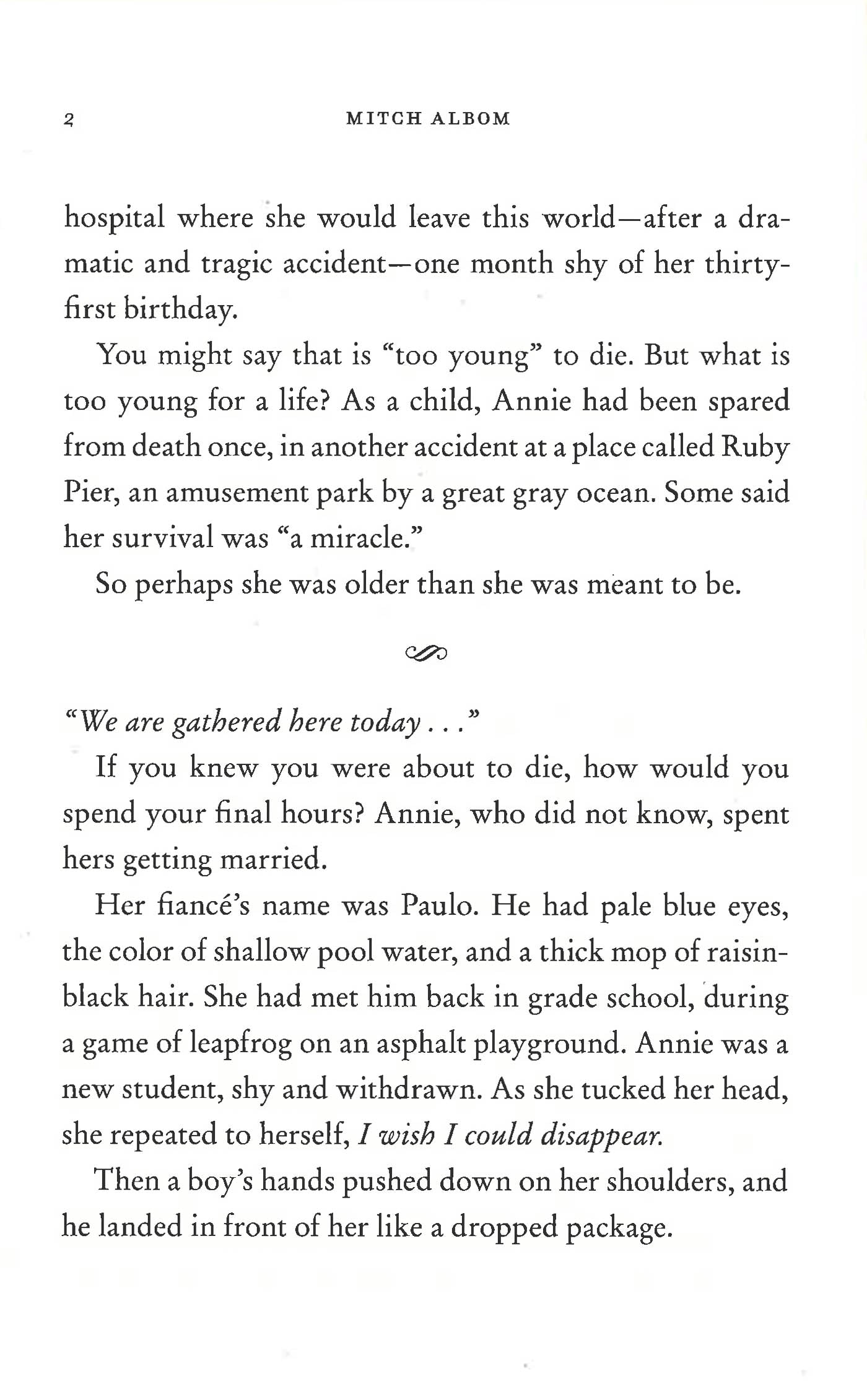 Fifteen years ago, in Mitch Albom's beloved novel, The Five People You Meet in Heaven, the world fell in love with Eddie, a grizzled war veteran- turned-amusement park mechanic who died saving the life of a young girl named Annie. Eddie's journey to heaven taught him that every life matters. Now, in this magical sequel, Mitch Albom reveals Annie's story.