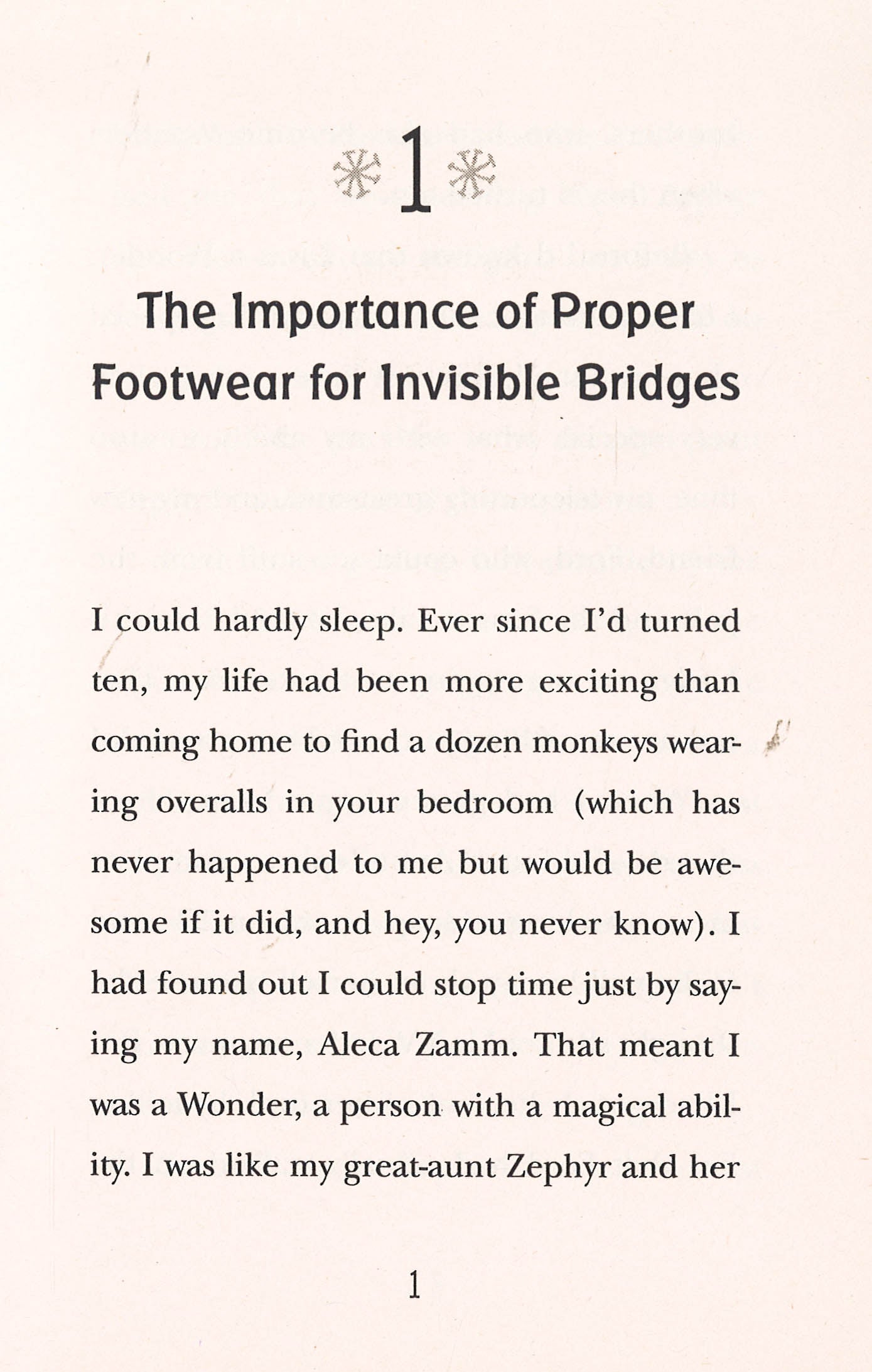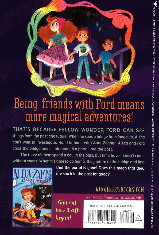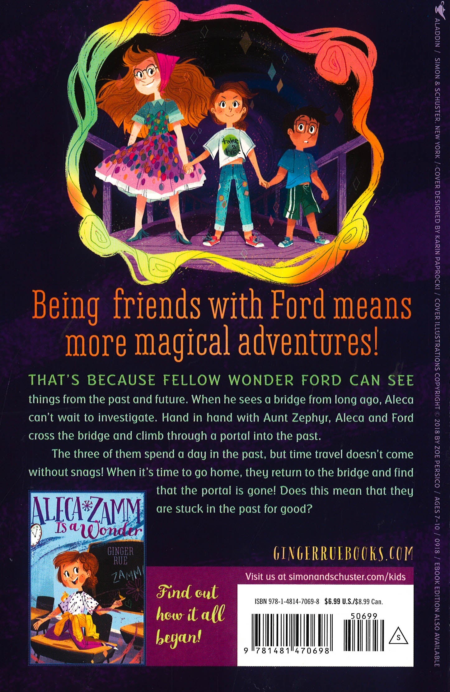 For Aleca Zamm, being friends with Ford, a fellow Wonder, means even more magical adventures! Ford can see things from the past and future, and when he sees a bridge that no longer exists in the present, Aleca can’t wait to investigate. Hand in hand with Aunt Zephyr, the three of them manage to cross the bridge and climb through a portal into the past.