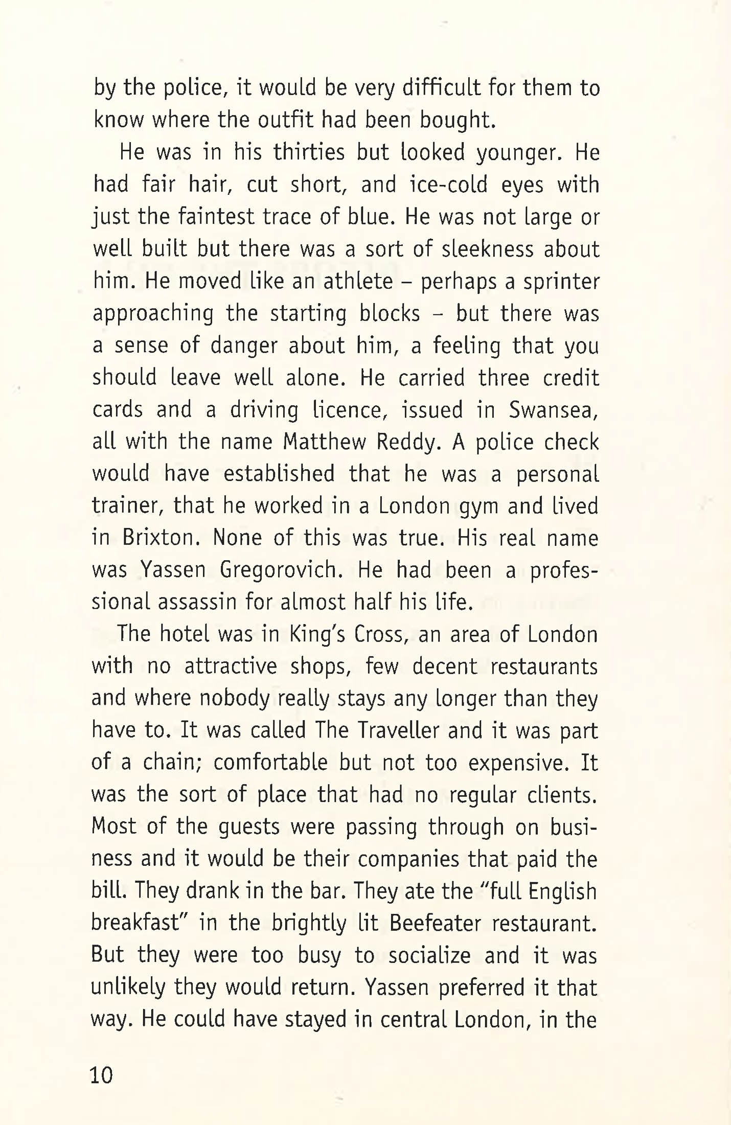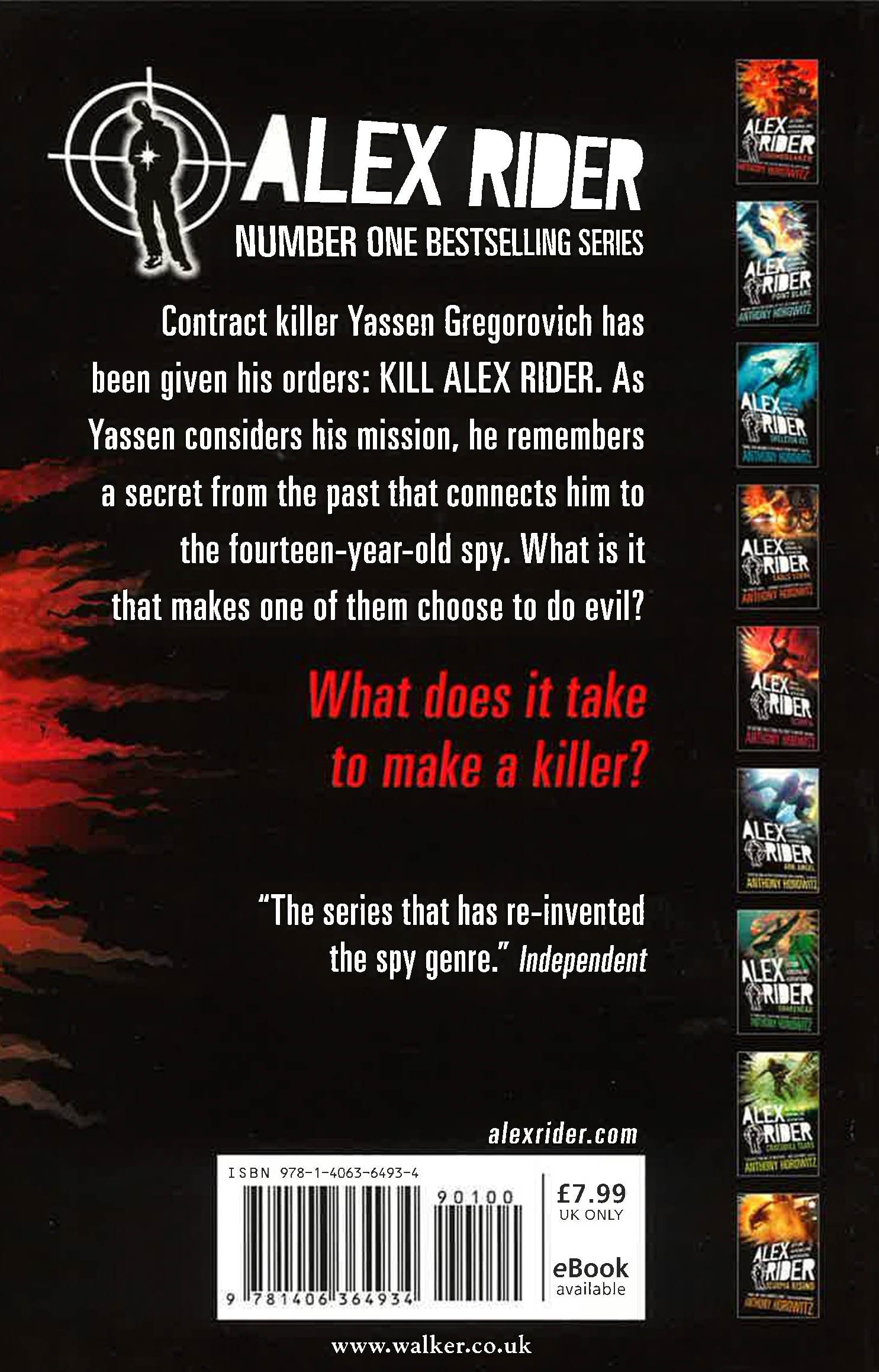 Alex Rider is actually the end of the story. Yassen Gregorovich was the beginning. Alex Rider?s life changed forever with one bullet and the pull of a trigger. Alex Rider?s life changed forever with the silent pull of a trigger. When Ian Rider died at the hands of the assassin Yassen Gregorovich, Alex, ready or not, was thrust into the world of international espionage?the world?s only teenage spy. Alex vowed revenge against Yassen and the two have battled ever since. Yet, years ago, it was none other than Alex?s own father who trained and mentored Yassen, turning him into the killer he would eventually become. What makes us choose evil? Why did one boy choose to kill while another chose to risk his life to save others? In some ways, Alex Rider and Yassen Gregorovich are mirror images of each other. Yet the paths they traveled turned them into mortal enemies. This is Yassen?s story. A journey down a darkened path.