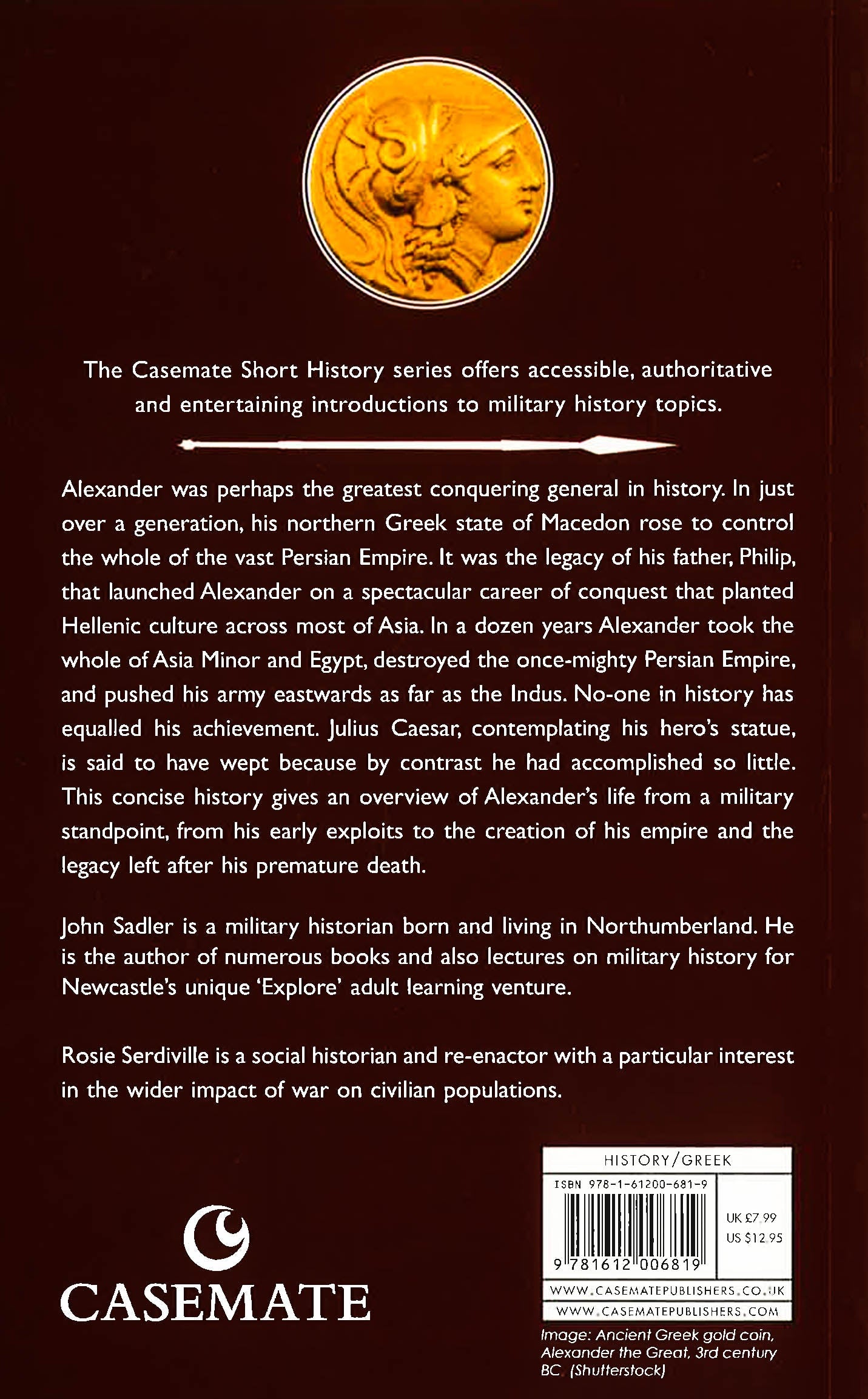 Alexander was perhaps the greatest conquering general in history. In just over a generation, his northern Greek state of Macedon rose to control the whole of the vast Persian Empire. It was the legacy of his father, Philip, that launched Alexander on a spectacular career of conquest that planted Hellenic culture across most of Asia. In a dozen years Alexander took the whole of Asia Minor and Egypt, destroyed the once mighty Persian Empire, and pushed his army eastwards as far as the Indus. No-one in history has equalled his achievement. Julius Caesar, contemplating his hero's statue, is said to have wept because by contrast he had accomplished so little. Much of Alexander's success can be traced to the Macedonian phalanx, a close-ordered battle formation of sarissa-wielding infantry that proved itself a war-winning weapon. The army Alexander inherited from his father was the most powerful in Greece, highly disciplined, trained and loyal only to the king. United in a single purpose, they fought as one. Alexander recognized this and is quoted as saying, "Remember upon the conduct of each depends the fate of all." Cavalry was also of crucial importance in the Macedonian army, as the driving force to attack the flanks of the enemy in battle. A talented commander, able to anticipate how his opponent would think, Alexander understood how to commit his forces to devastating effect, and was never defeated in battle. He also developed a corps of engineers that utilised catapults and siege towers against enemy fortifications. Alexander led from the front, fighting with his men, eating with them, refusing water when there was not enough, and his men would quite literally follow him to the ends of the (known) world, and none of his successors was able to hold together the empire he had forged. Although he died an early death his fame and glory persist to this day. This concise history gives an overview of Alexander's life from a military standpoint, from his early military exploits to the creation of his empire and the legacy left after his premature death.