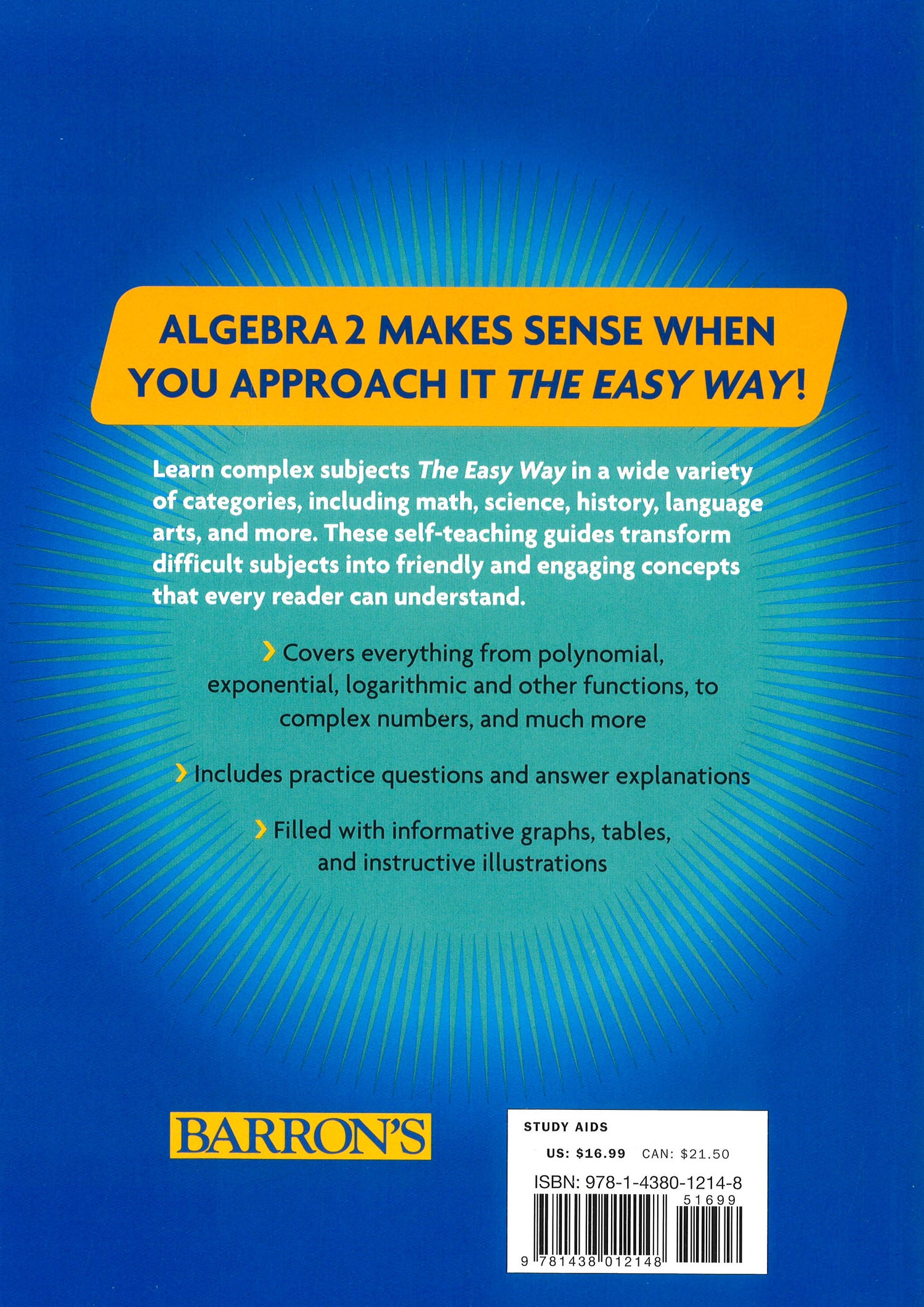 A self-teaching guide for students, Algebra 2: The Easy Way provides easy-to-follow lessons with comprehensive review and practice.