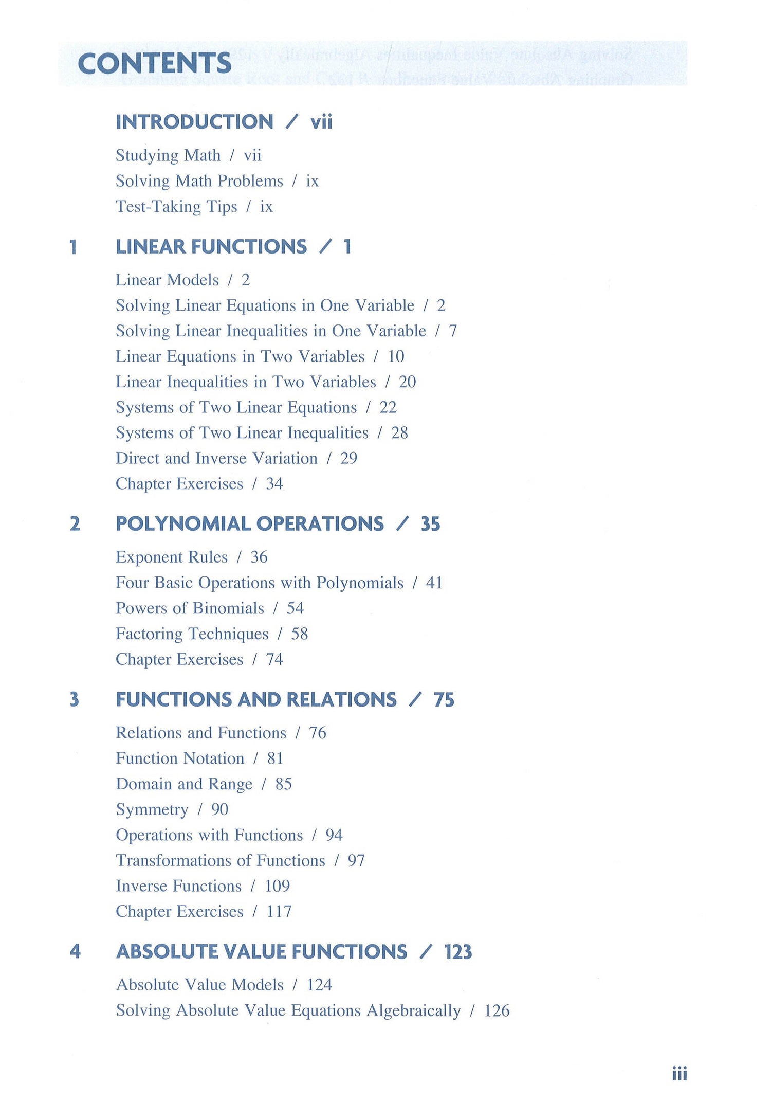 Linear Functions Absolute Value and Quadratic FunctionsPolynomial Operations and FunctionsStatistics Modeling