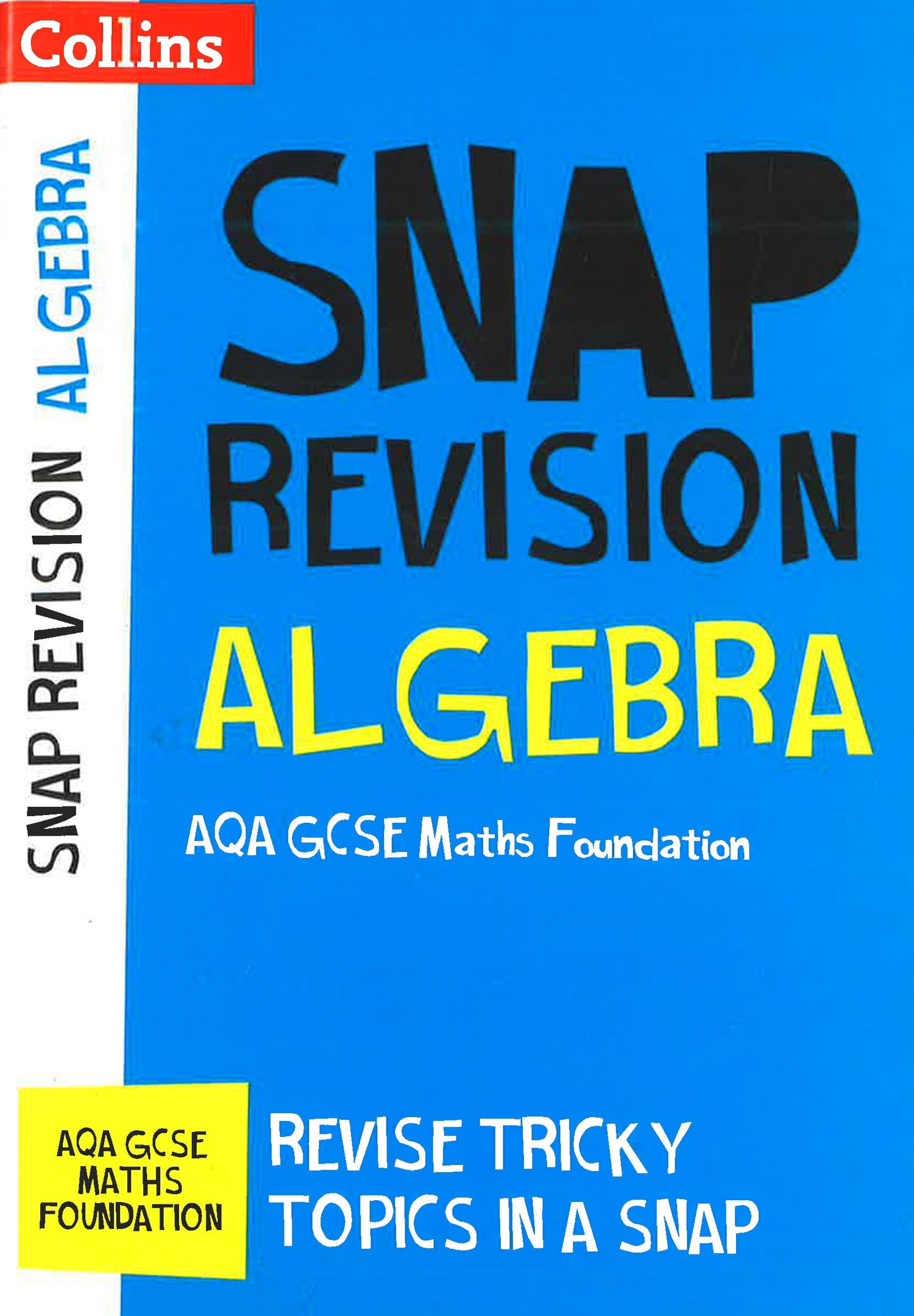 Exam Board: AQA Level: GCSE Subject: Maths First Teaching: September 2015; First Exams: June 2017 Suitable for the 2020 exams Revise tricky topics in a snap Collins Snap Revision helps you focus on the areas of your revision that you find tricky or need extra practice in. Spaced practice opportunities allow you to test, revisit and review your understanding throughout your revision, a method proven to improve your performance in the exam. * Focussed revision in tricky areas of the exam * Targeted practice in specific areas where more support may be needed * Ideal to use at home