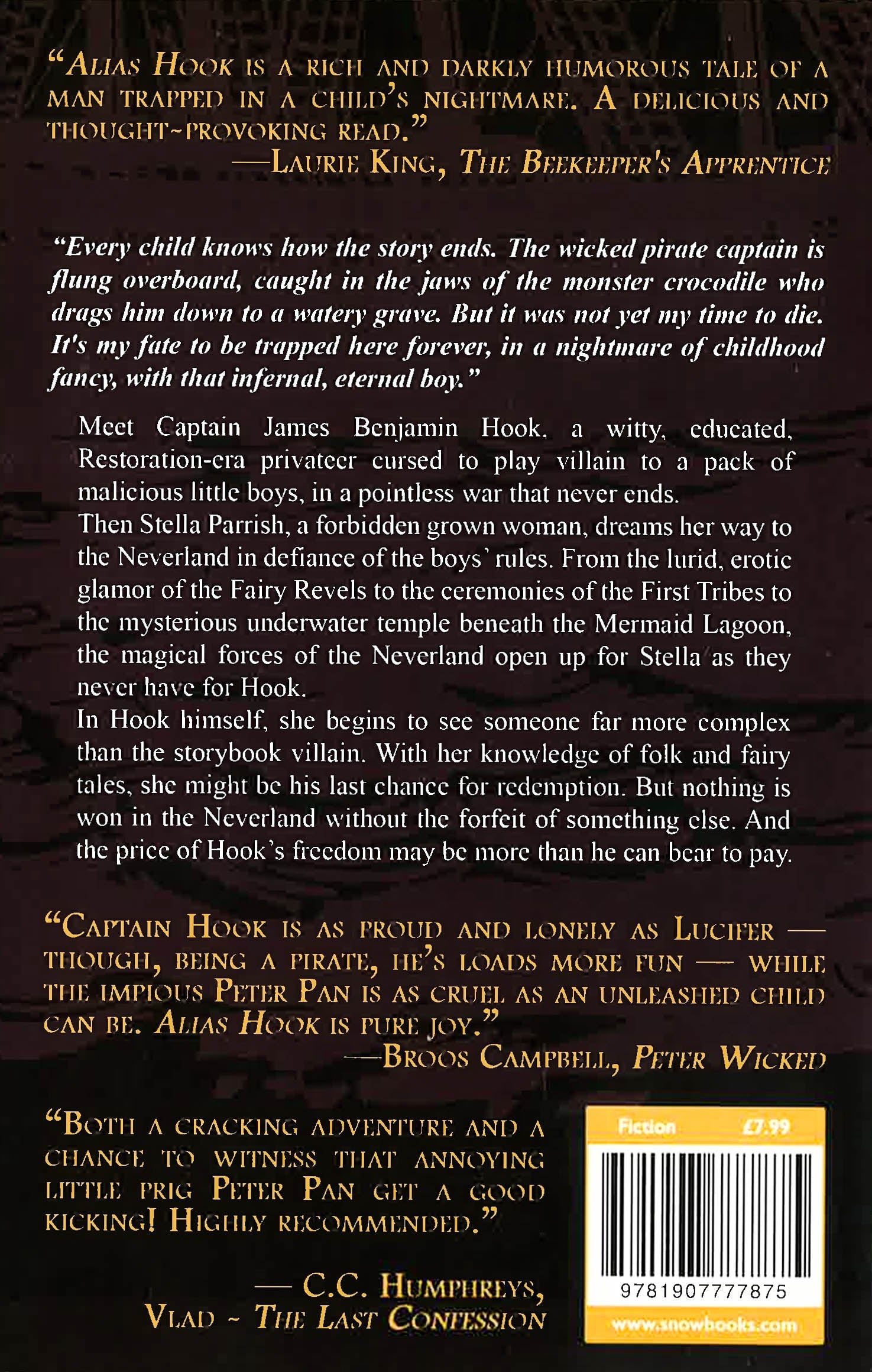 Every child knows how the story ends. The wicked pirate captain is flung overboard, caught in the jaws of the monster crocodile who drags him down to a watery grave. But it was not yet my time to die. It's my fate to be trapped here forever, in a nightmare of childhood fancy, with that infernal, eternal boy. Meet Captain James Benjamin Hook, a witty, educated Restoration-era privateer cursed to play villain to a pack of malicious little boys in a pointless war that never ends. But everything changes when Stella Parrish, a forbidden grown woman, dreams her way to the Neverland in defiance of Pan's rules. From the glamour of the Fairy Revels, to the secret ceremonies of the First Tribes, to the mysterious underwater temple beneath the Mermaid Lagoon, the magical forces of the Neverland open up for Stella as they never have for Hook. And in the pirate captain himself, she begins to see someone far more complex than the storybook villain. With Stella's knowledge of folk and fairy tales, she might be Hook's last chance for redemption and release if they can break his curse before Pan and his warrior boys hunt her down and drag Hook back to their neverending game. Alias Hook by Lisa Jensen is a beautifully and romantically written adult fairy tale.